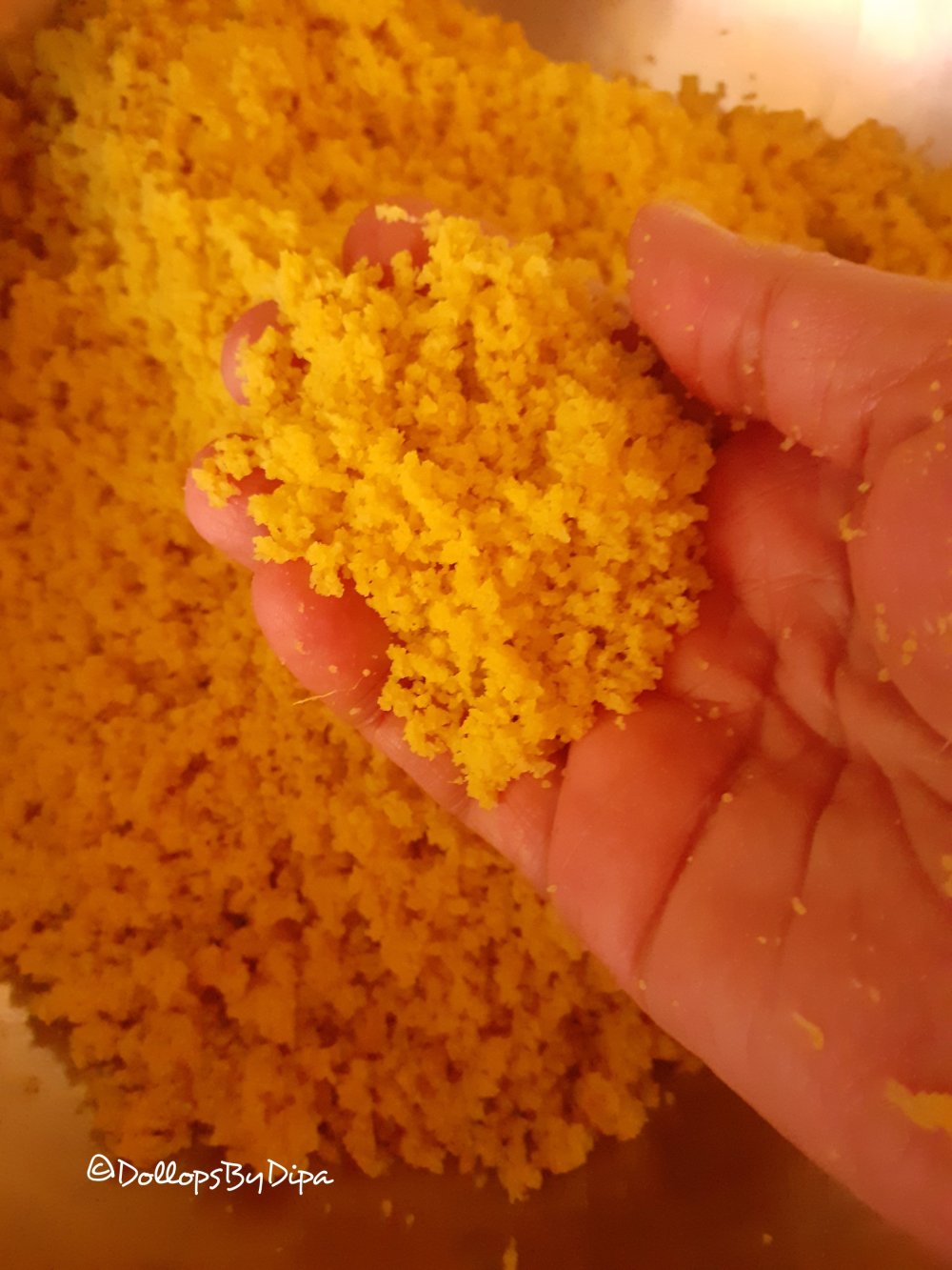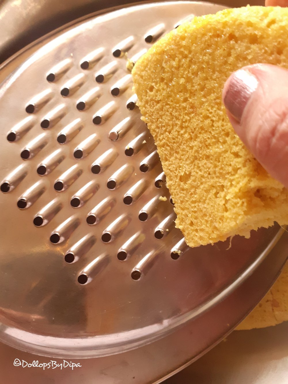 6. Unmould it and let it cool completely . Then grate it. You can crumble it with hands too but with grater , we get a uniform crumble.