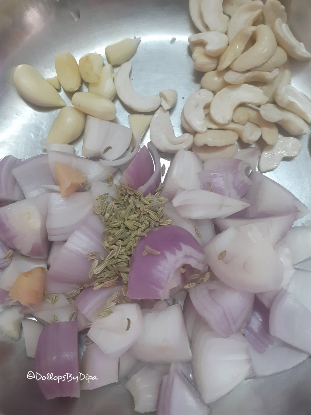 Authentic and traditional dum aloo is mostly prepared without onion garlic. While in restaurant style Kashmiri Dum Aloo , onion-garlic added. In Kashmir mountain areas are more and that’s why ginger like roots are hard to procure. And that’s the reason , in Kashmiri Cuisine, use of dry ginger powder is more.