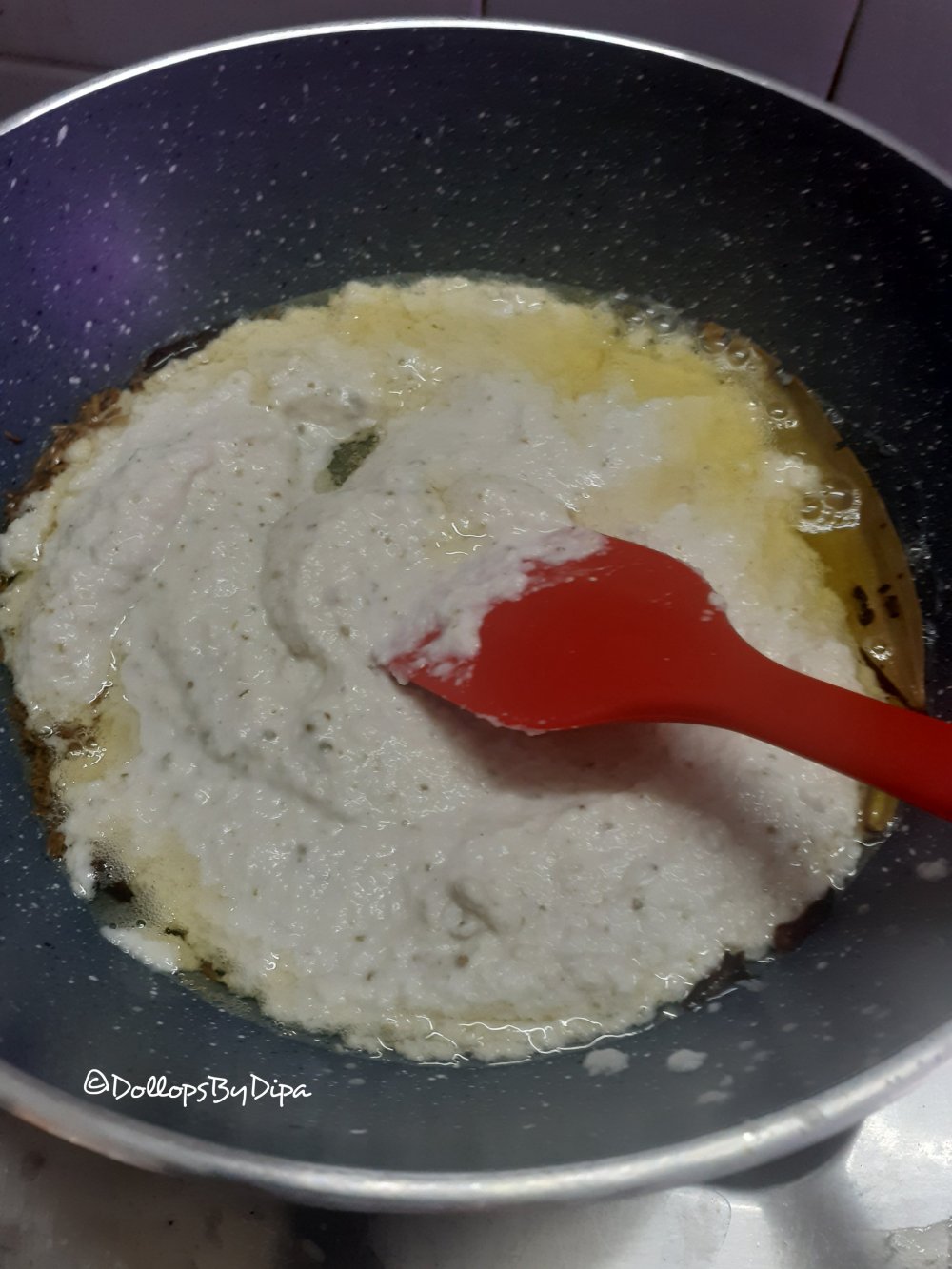 4. Add prepared paste, make sure that flame is slow, stirring continuously mix it well.