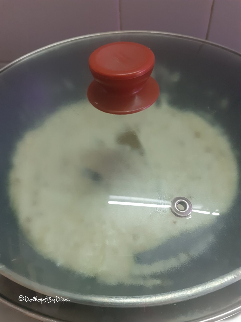 9. Now seal the pan with foil and then cover it with lid . Sealing with foil , won’t allow steam to escape. In traditional Dum cooking , kneaded dough is used for sealing. Let it cook for 10-15 minutes in a slow flame.