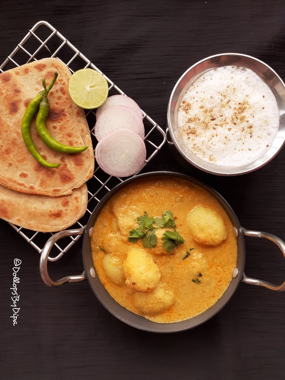 Dum aloo is a pooular potato curry from North India . There are many various versions of this delicious curry. Dum aloo prepared in Punjab is based on onion tomato gravy while in Kashmiri Dum aloo gravy is curd based.