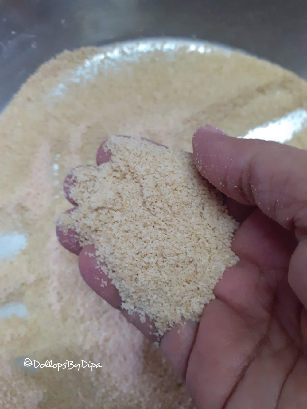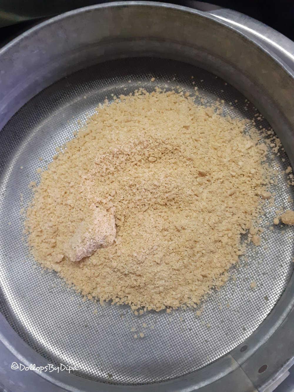 4. Then sieve it for uniform granules. Choose siever as per your choice of churma texture.
