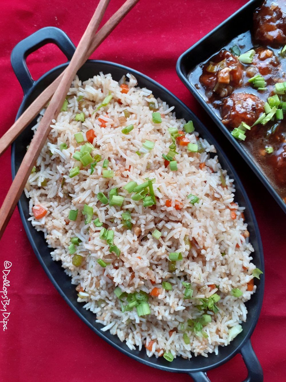 Veg fried rice is one of the most pooular dish along with hakka noodles and manchurian in Indo Chinese food. This flavourful and aromatic rice dish is paired best with gravy Manchurian. And it turns into a satisfying mini meal.