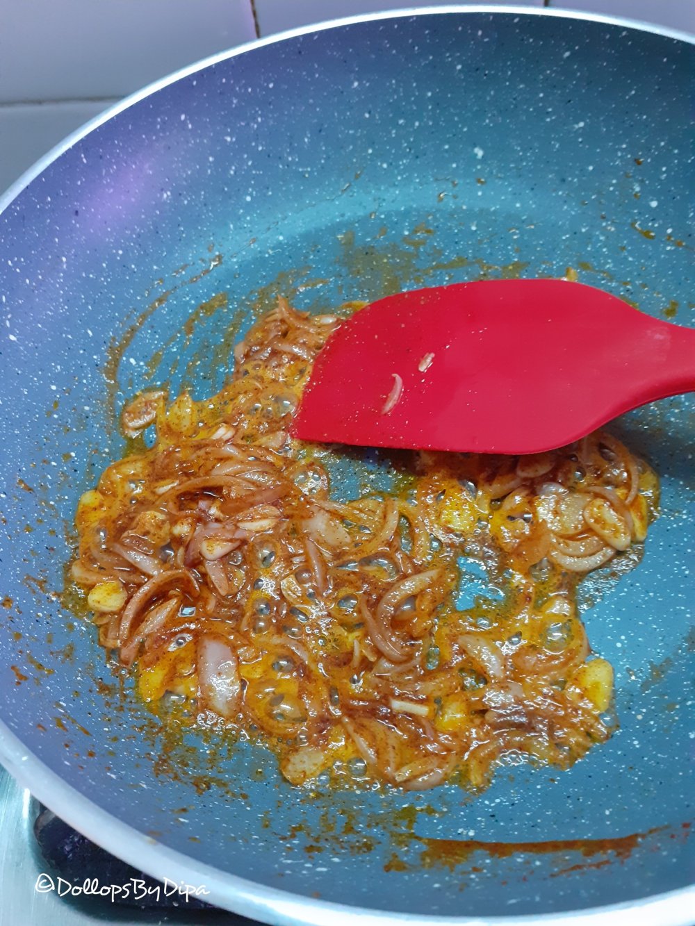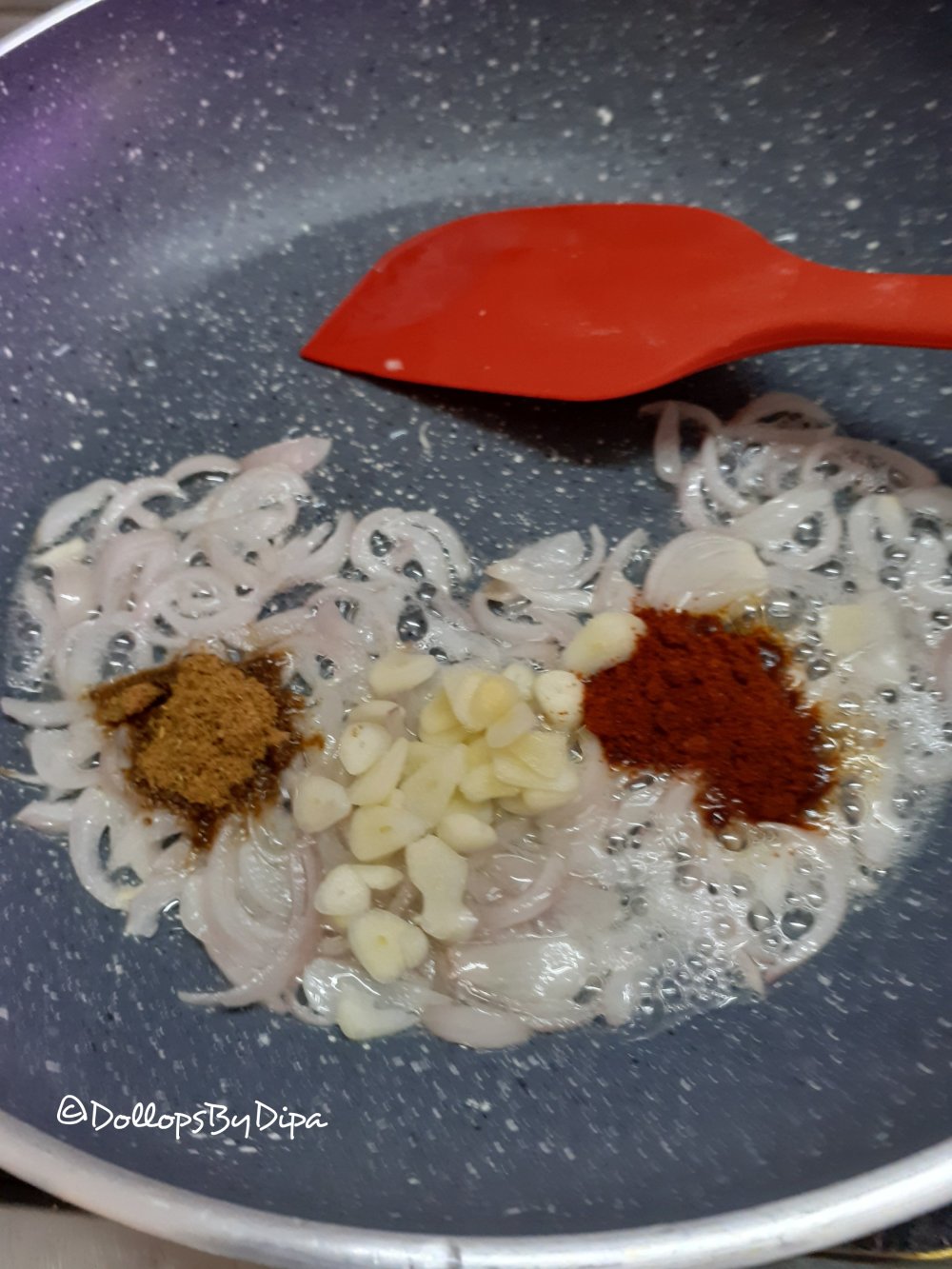 3. Further add chopped garlic, chilli powder and cumin powder.