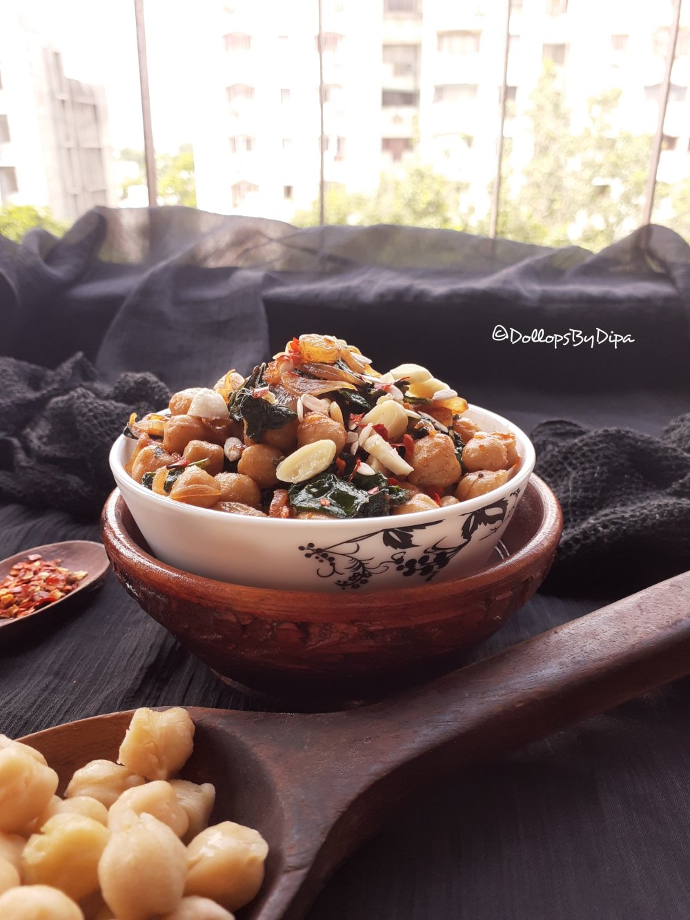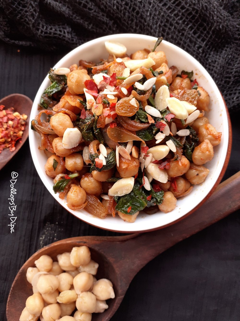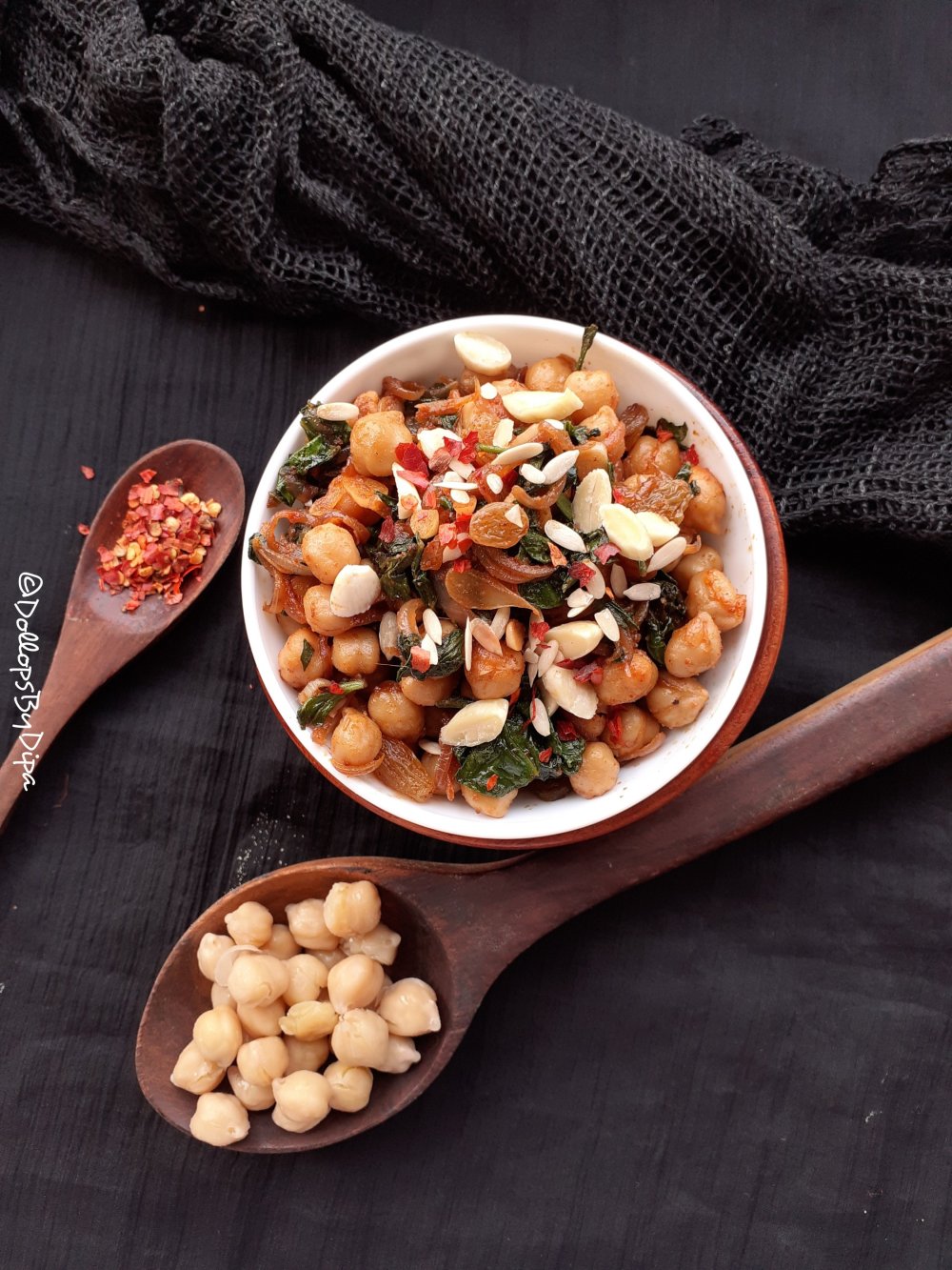 Catalan Chickpeas with spinach is a Spanish dish which is very popular in ‘Tapas’ in Barcelona. ‘Tapas’ refers to a style of serving specific dishes in Barcelona/Spain. ‘Tapas’ maens ‘to cover’ in Spanish. Majorly appetizers or snacks are served in Tapas. ‘Catalan’ is a lanuguage and a community of Spain.