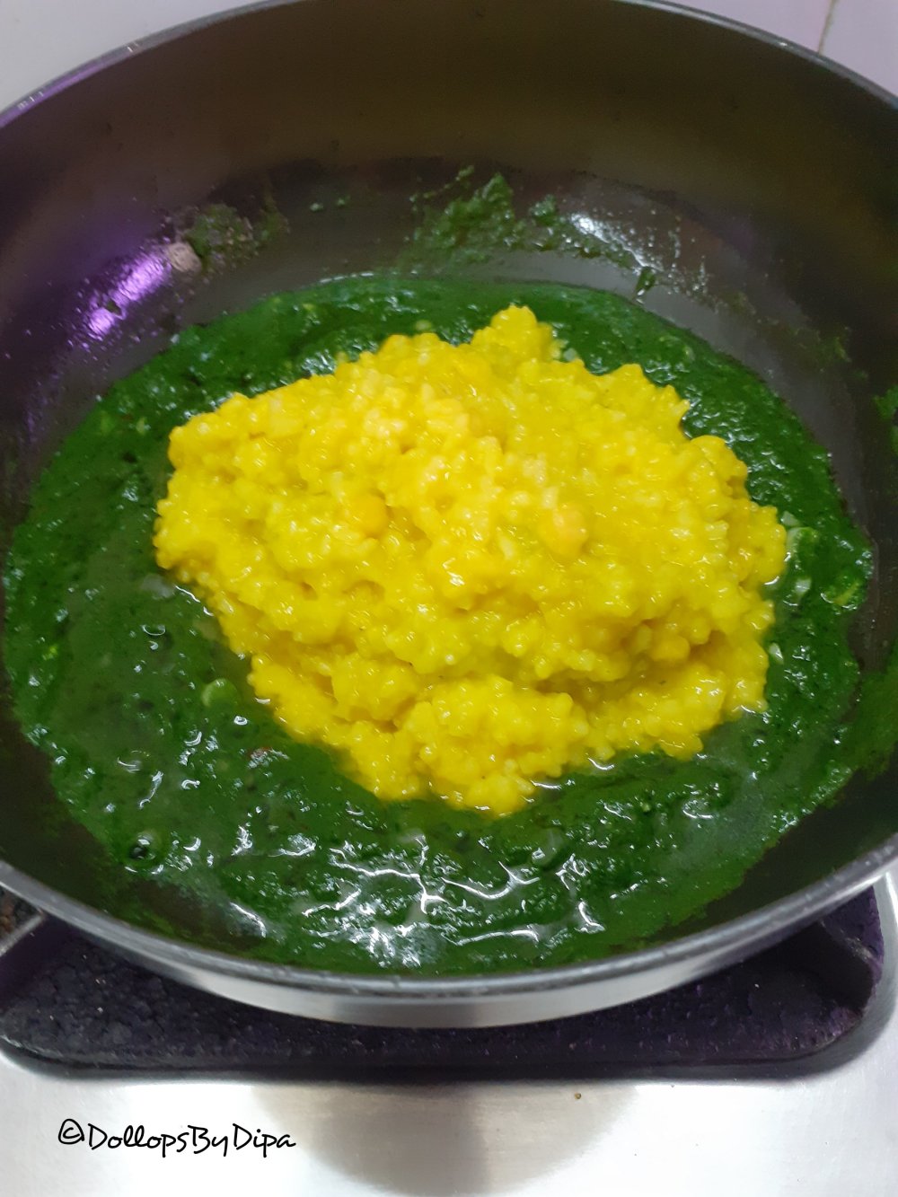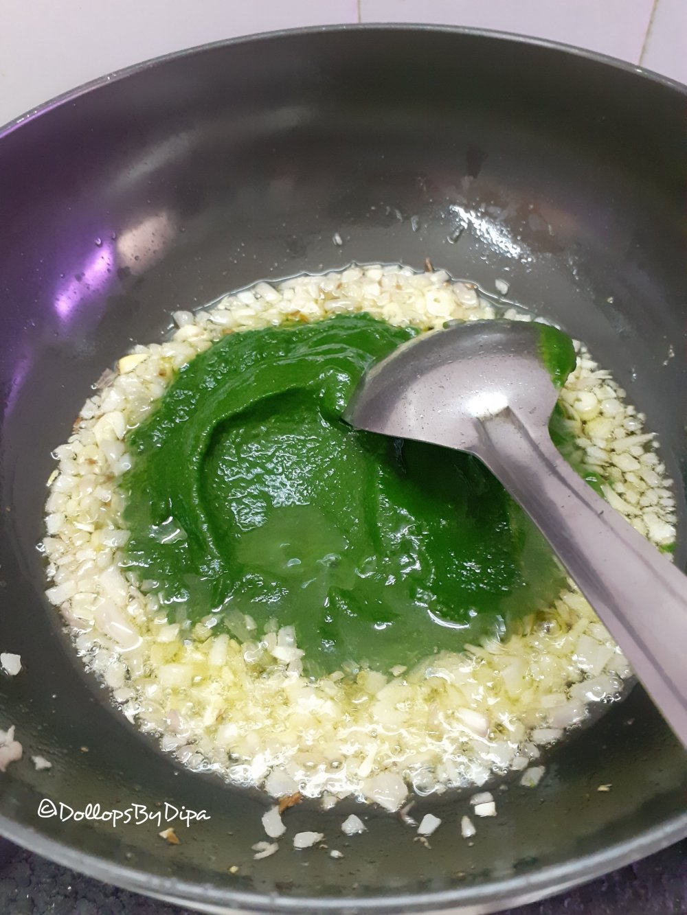 4. Further add spinach puree and salt and cook for a couple of minutes.