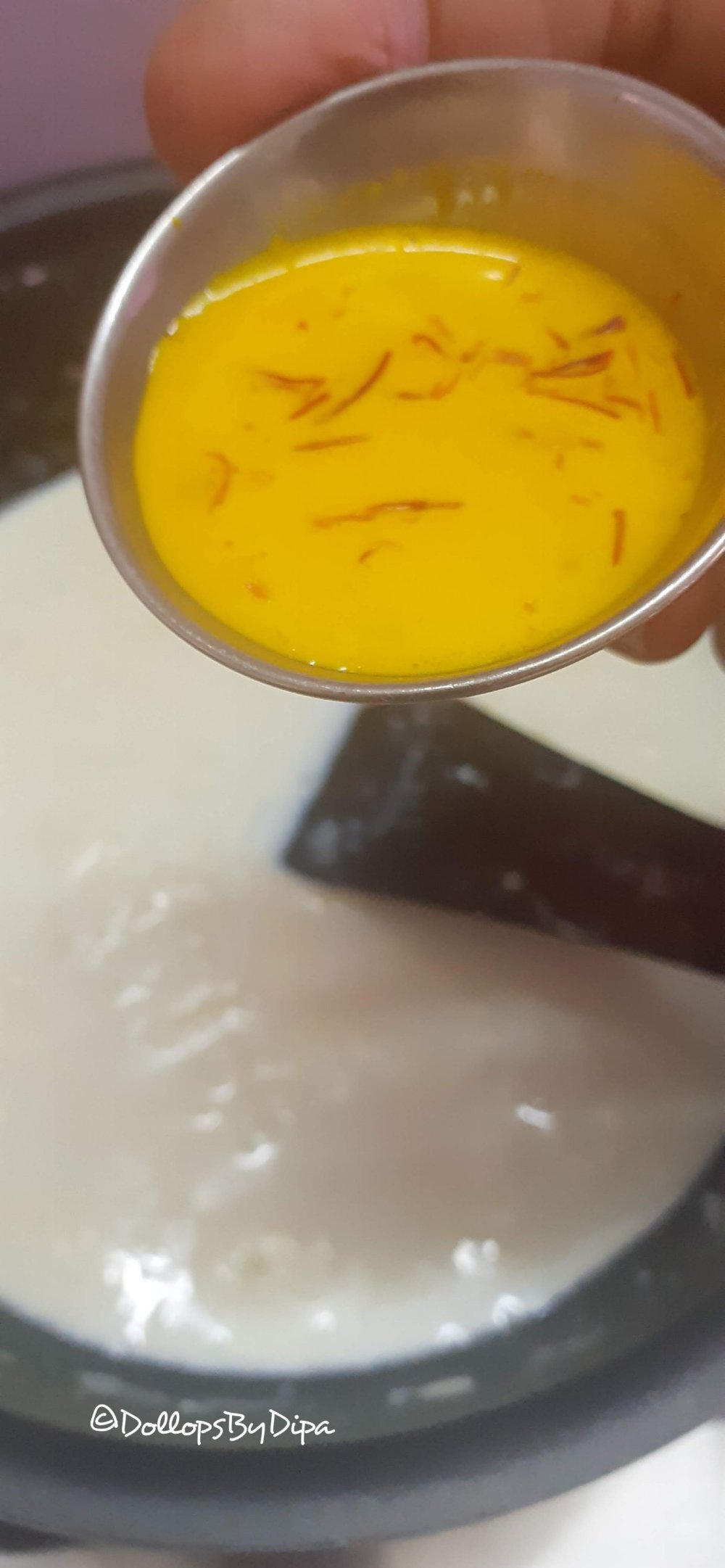 2. Once the milk starts boiling, add soaked and drained rice. Soak saffron in spared milk.
