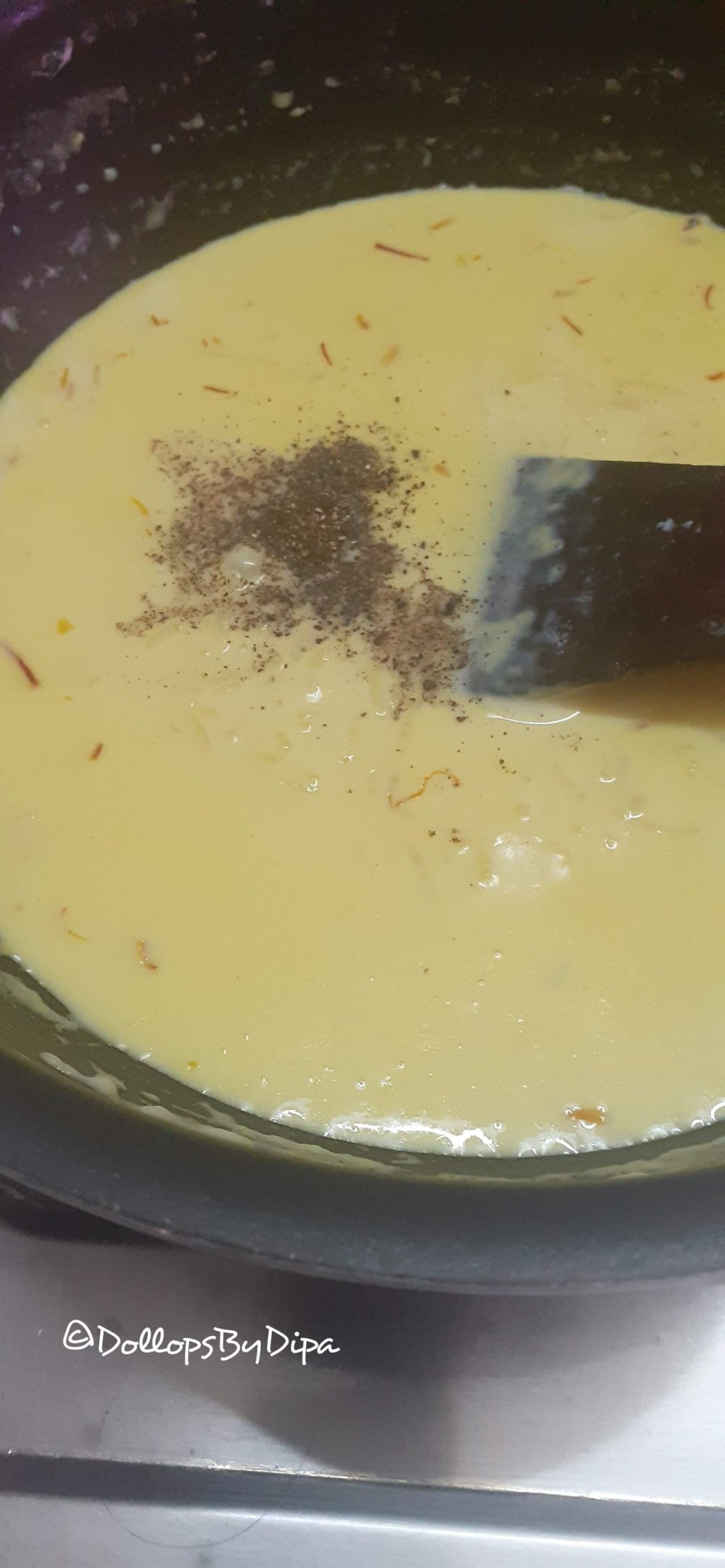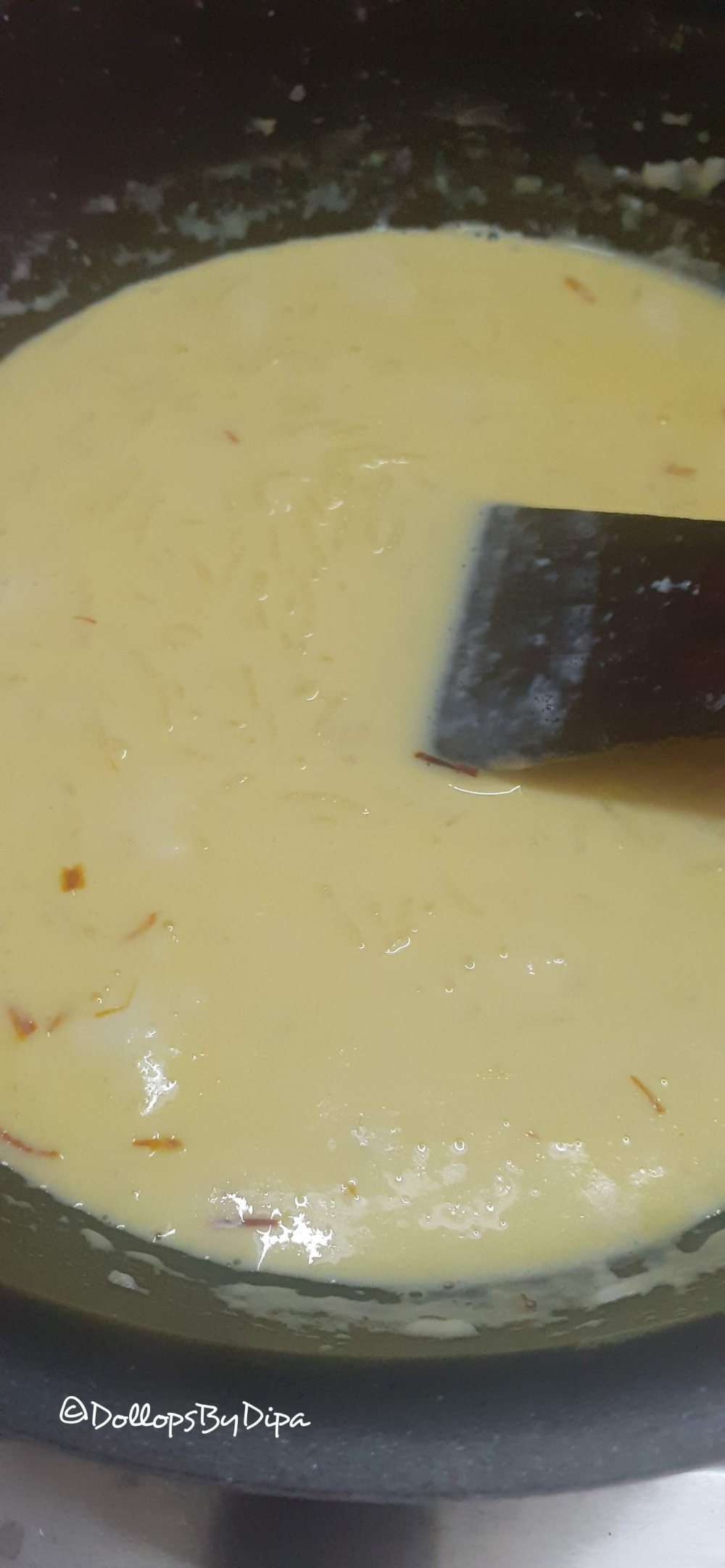 5. Then add soaked safffron also and cook for a while, you can notice, now our kheer, becomes thick.