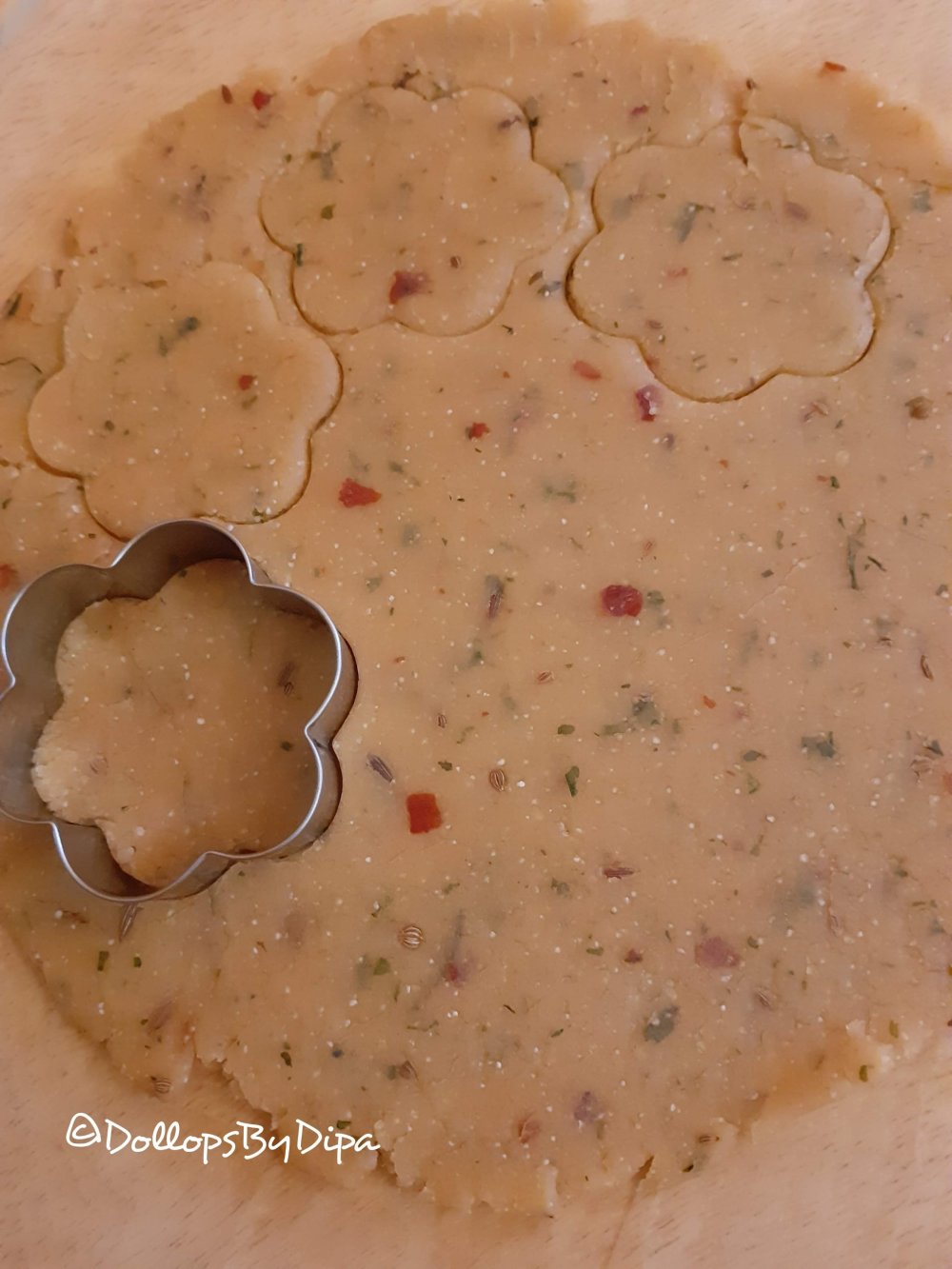 5. Then roll thick like paratha. Cut it in your desired shape. I used a cookie cutter. Prick it with a fork.