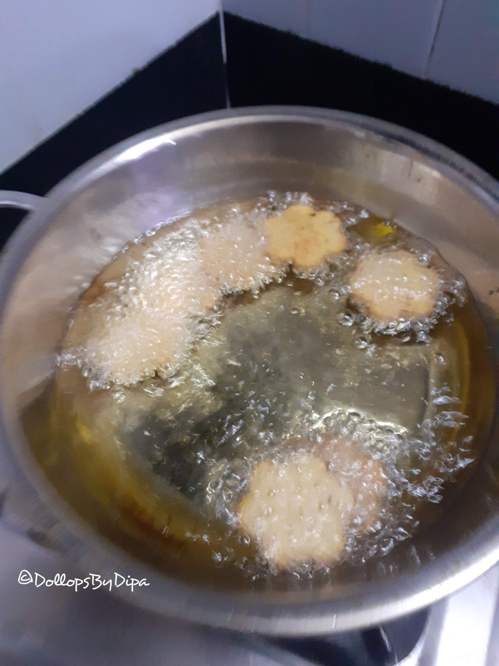 6. On a medium flame, heat oil and deep fry matharis from both sides.