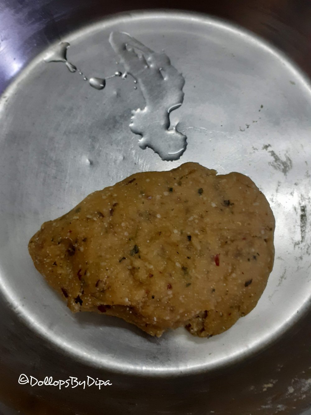 1. Mix all the flours and dried spices, salt and oil+ ghee and crumble it well.