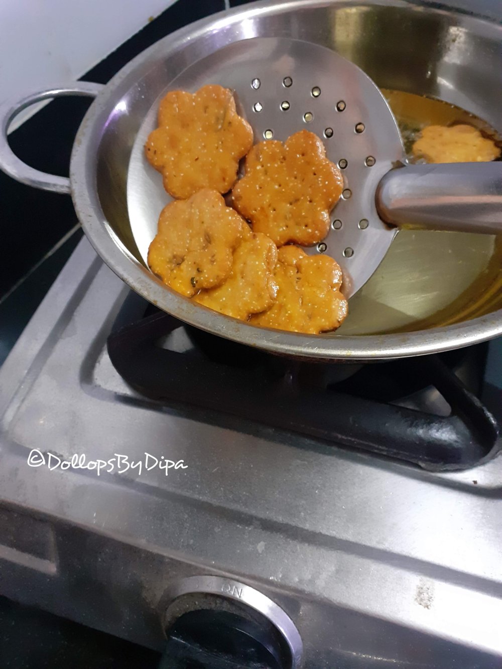6. On a medium flame, heat oil and deep fry matharis from both sides.