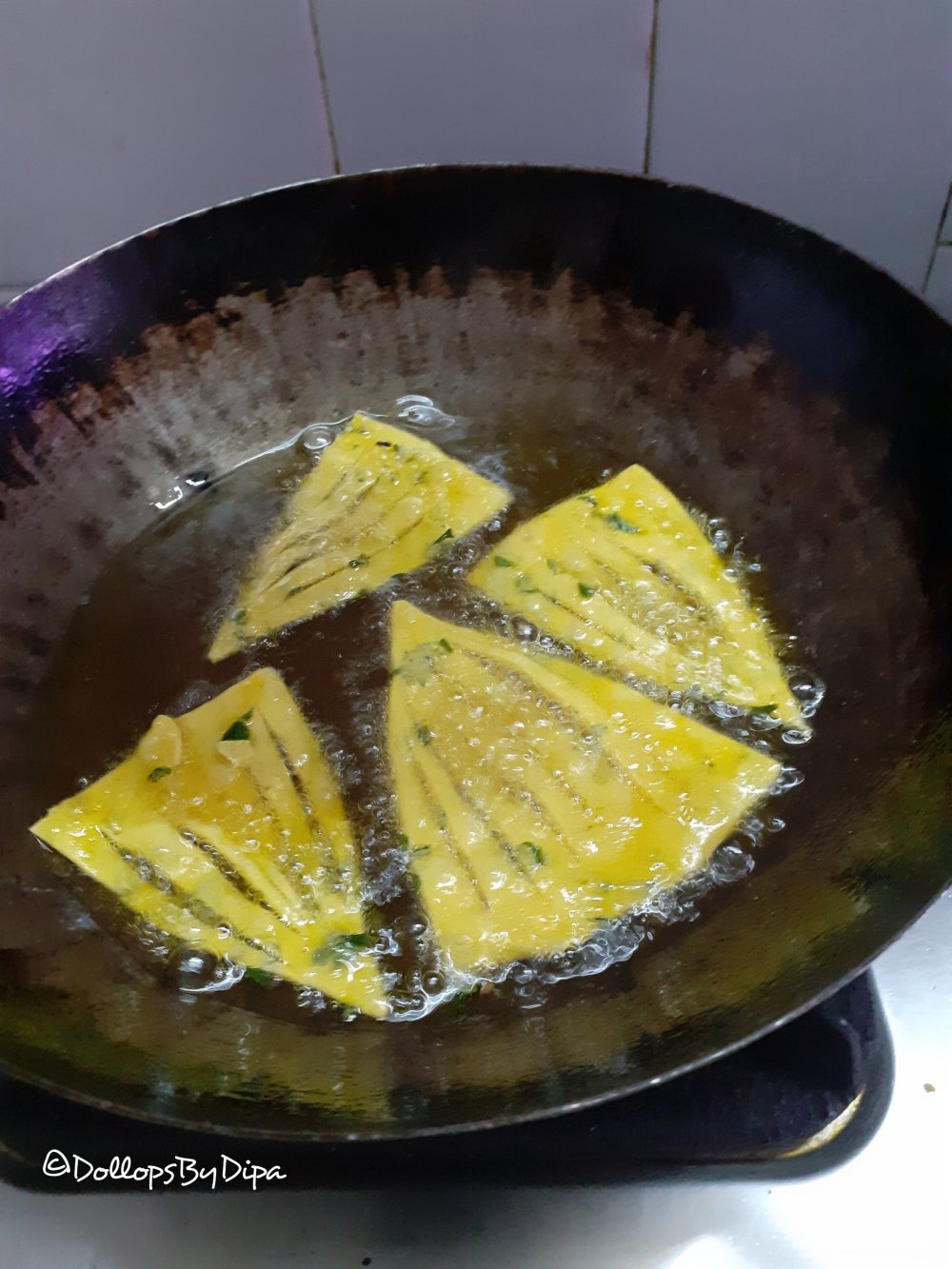 5. In a pre heated oil deep fry it on slow to medium flame, till it becomes crispy.