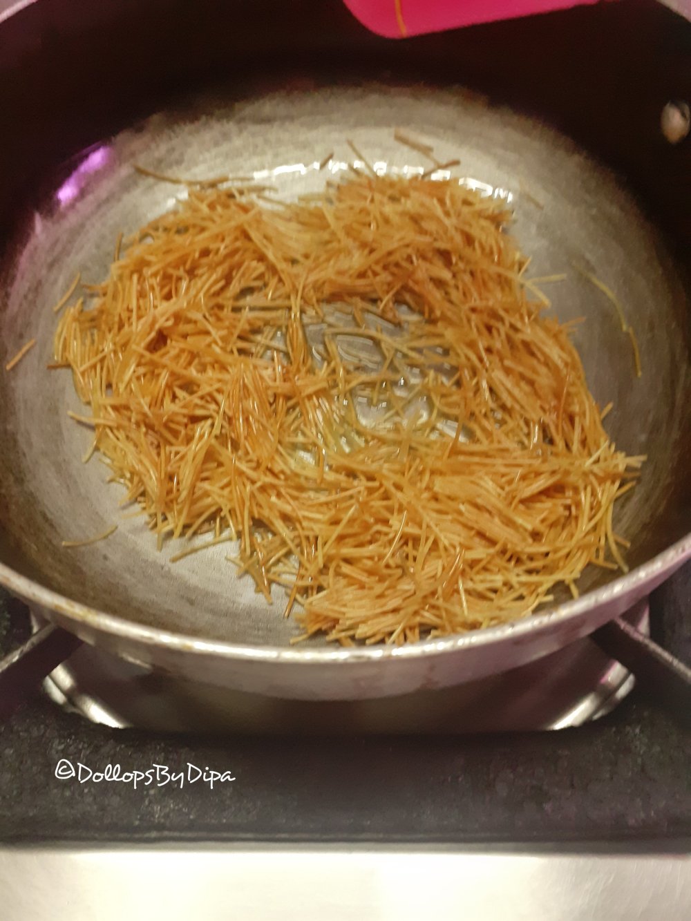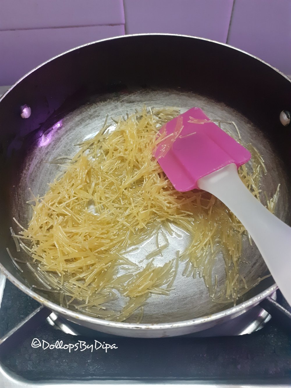 2. On other side , heat ghee in a pan, roast vermicelli till it turns to golden brown.