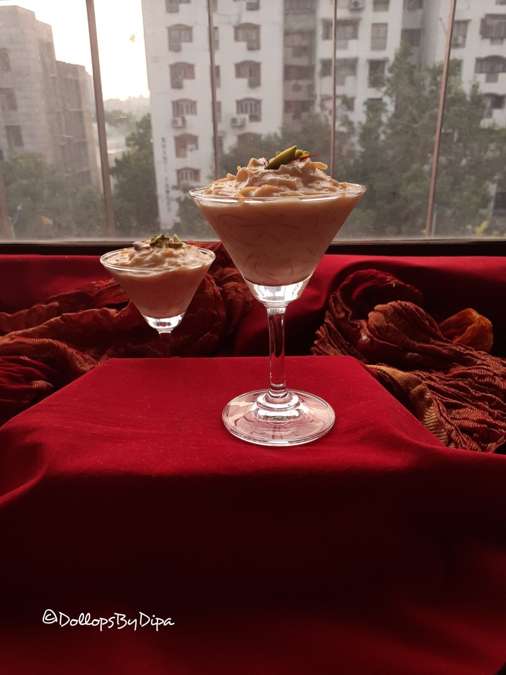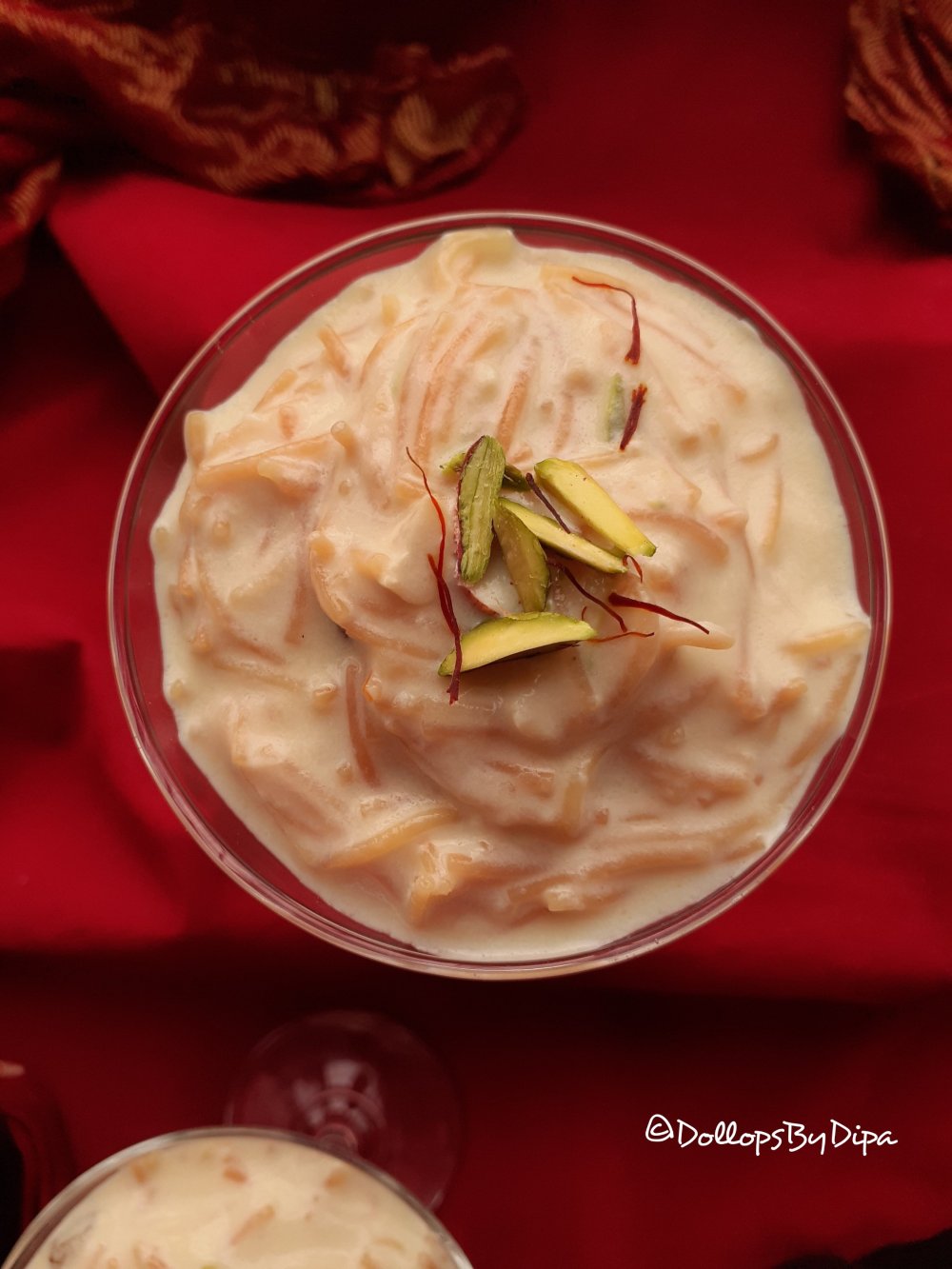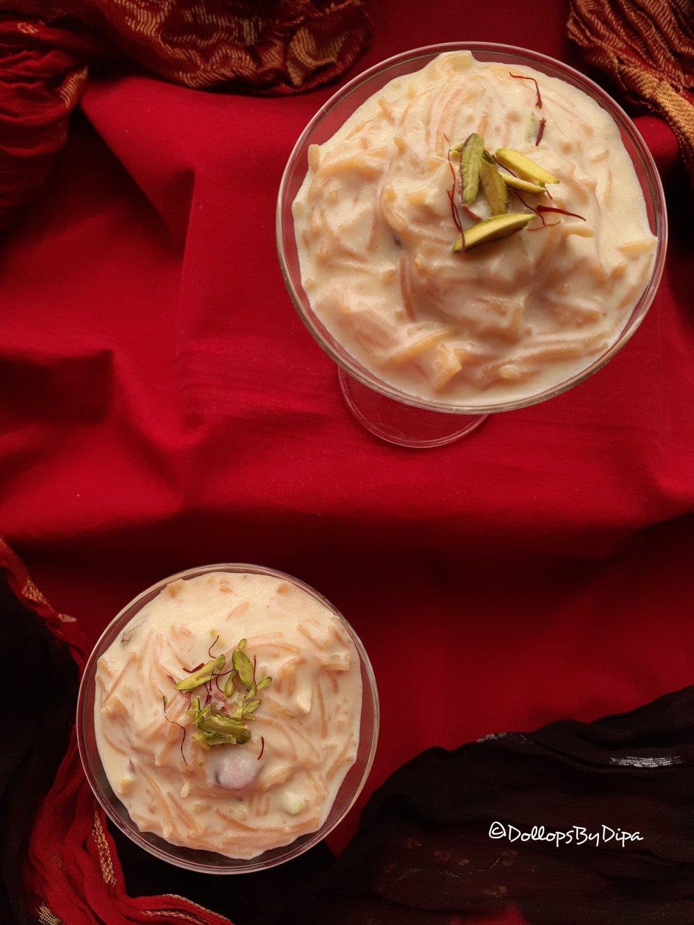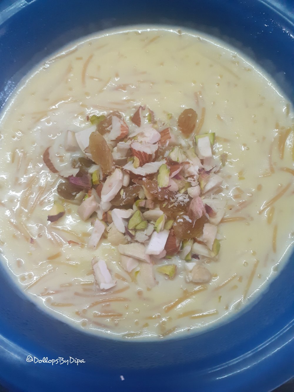 5. Now dilutes custard powder in the spared milk and add it into vermicelli milk and cook for 5-7 more minutes. After adding custard it will thicken. Add chopped dry fruits and turn off the heat.