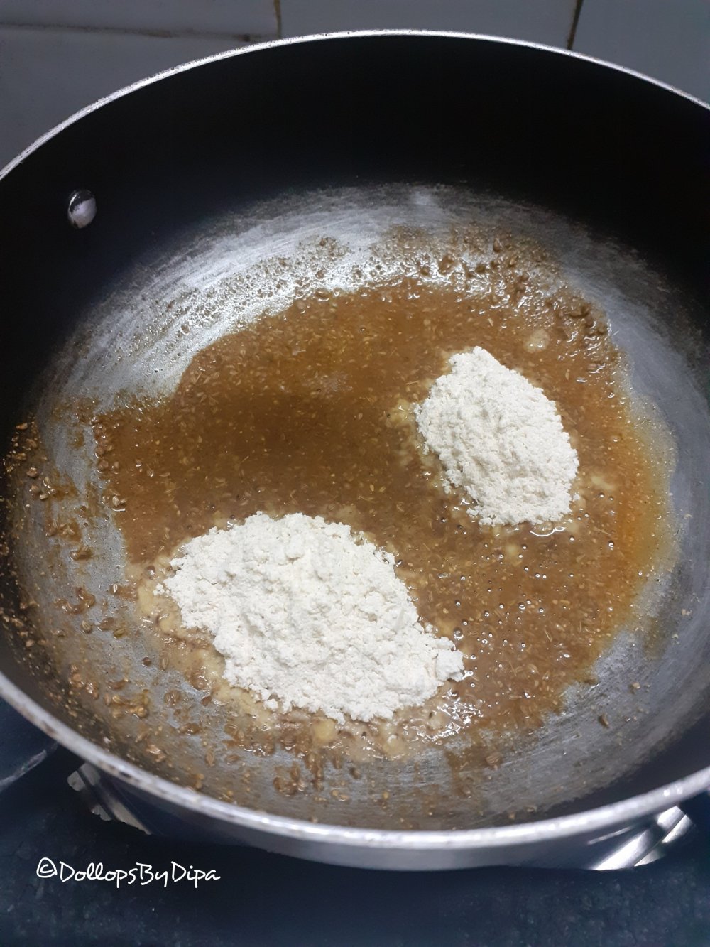 2. Then add wheat flour and saute it for 1-2 minutes.