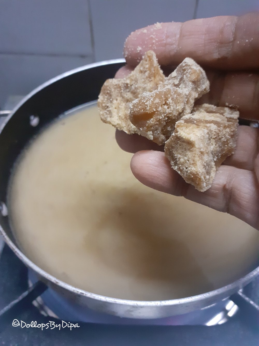 4. Then add jaggery and let it boil for 4-5 minutes. Then turn off the heat.