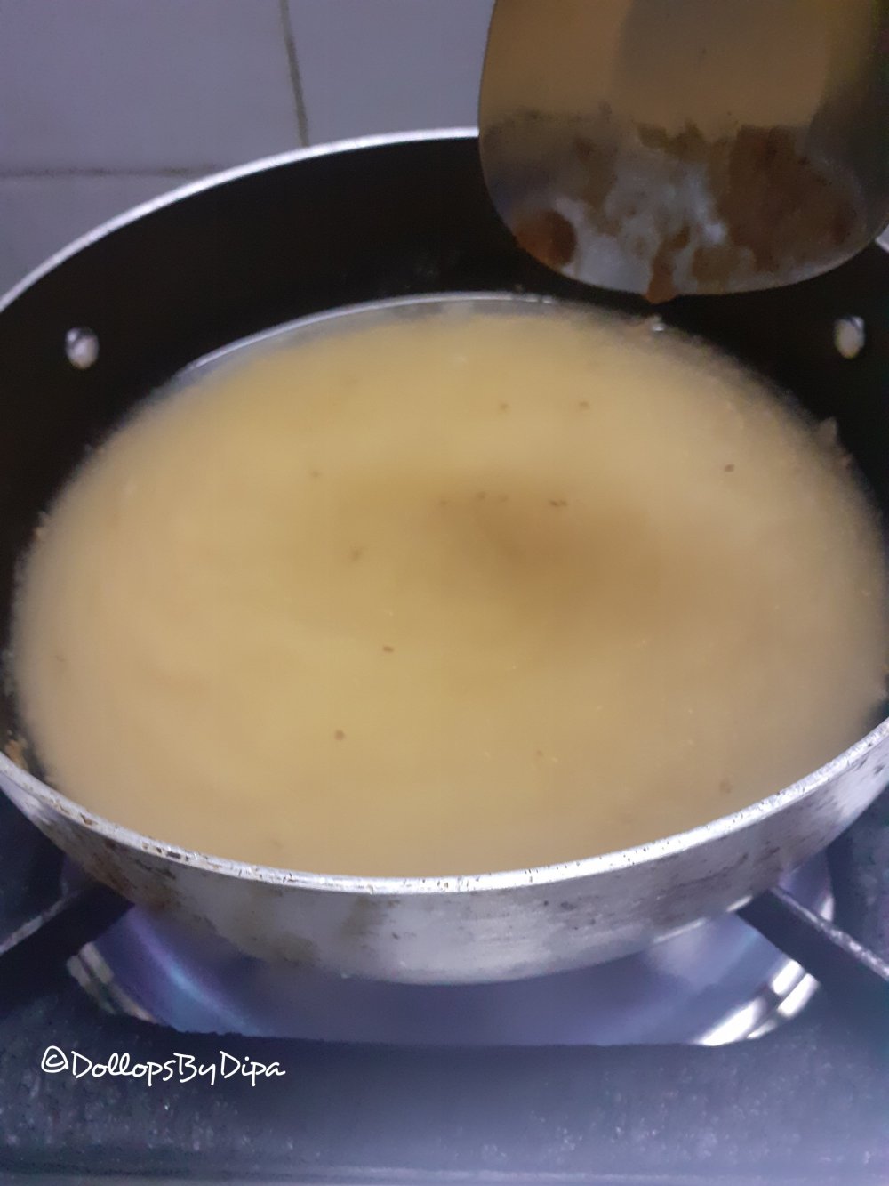 3. Further add about 4 cups of water gradually, while stirring continuously.