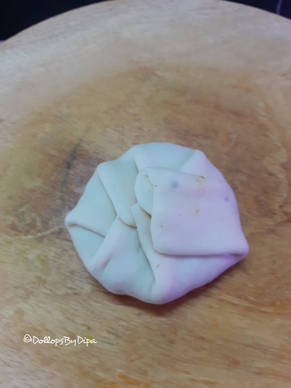 7. Now knead the dough for 2-3 minutes and divide in equal parts. Take one and roll it.