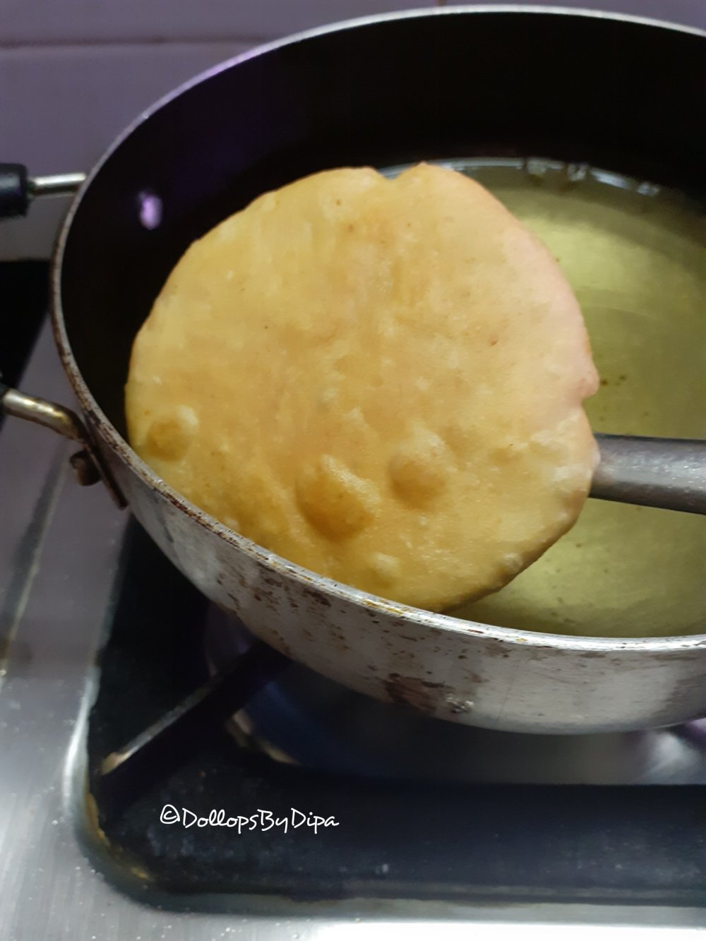 10. In pre heated oil,deep fry kachoris on a slow flame from both sides.