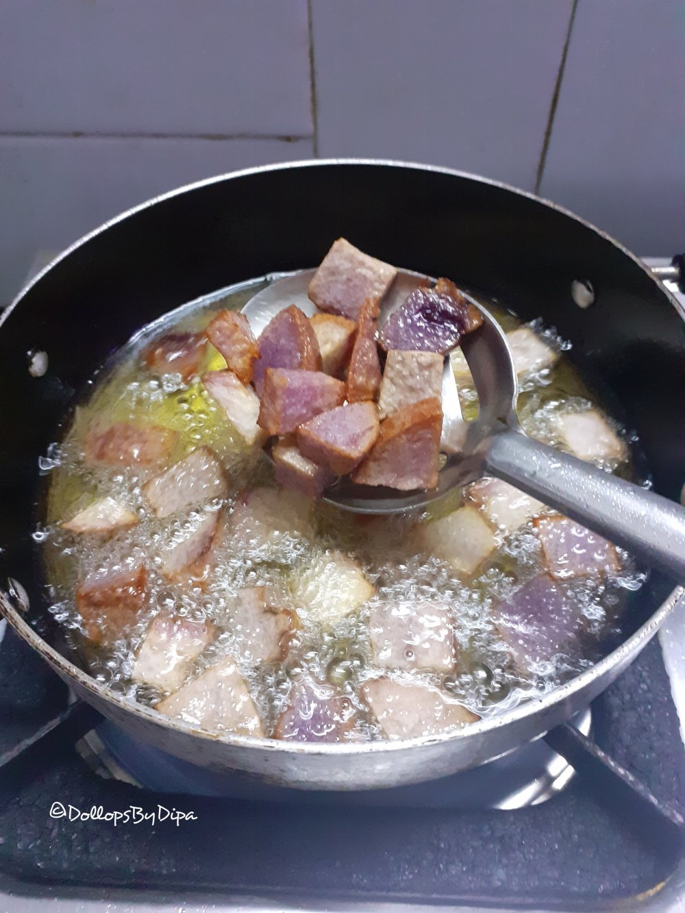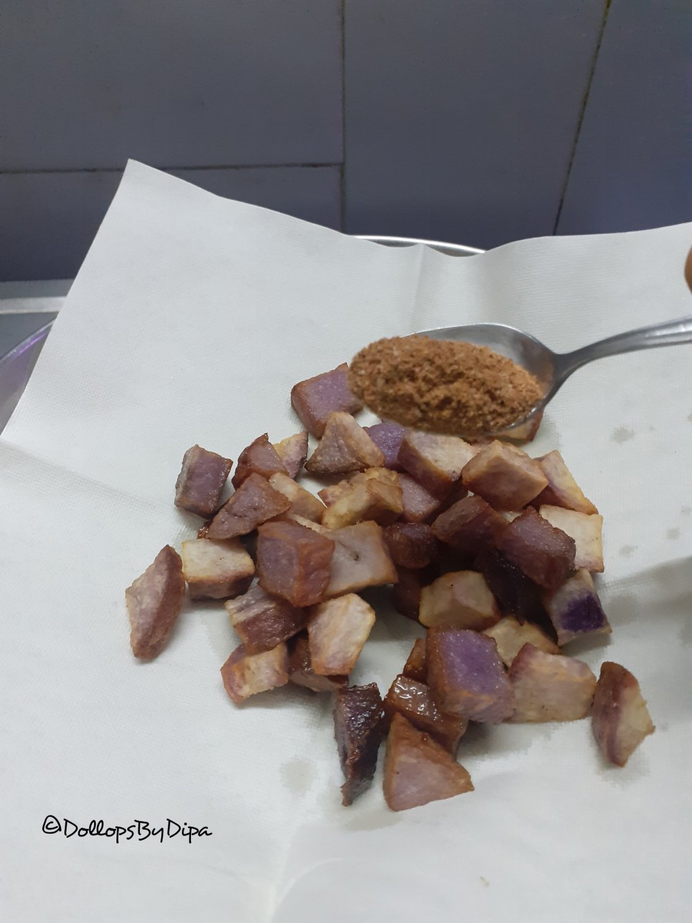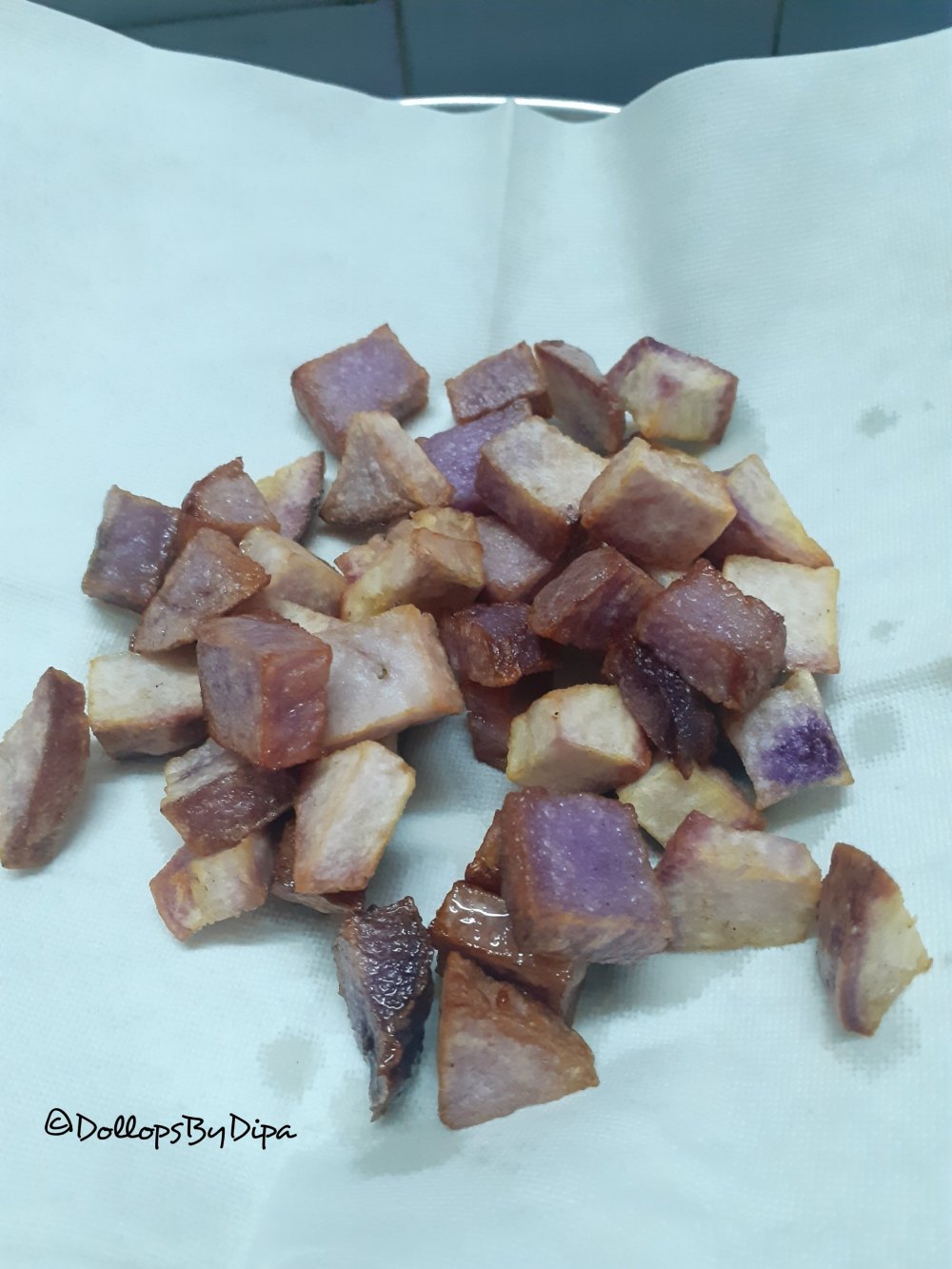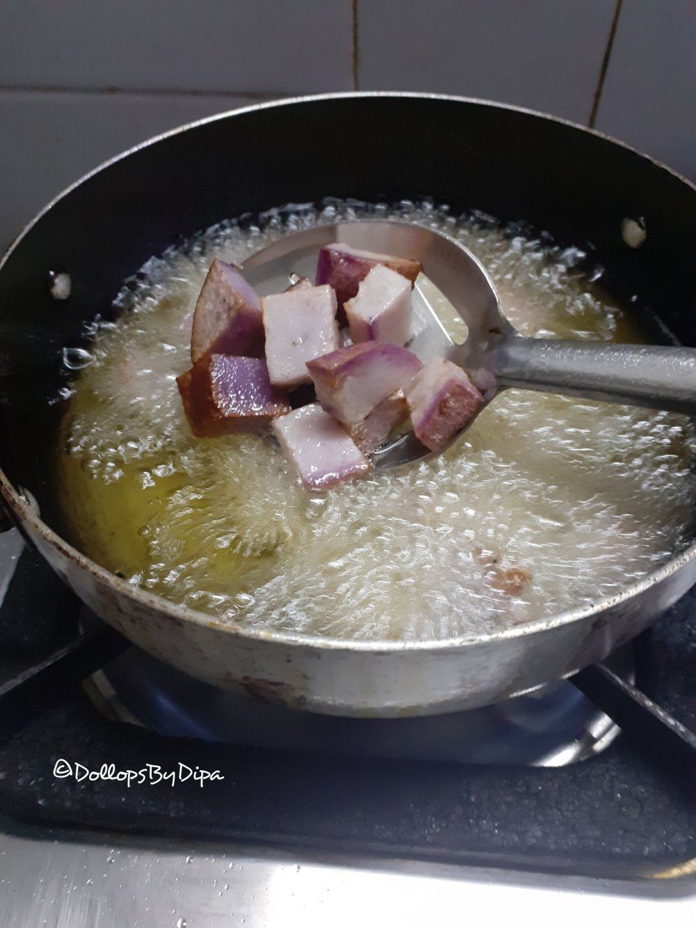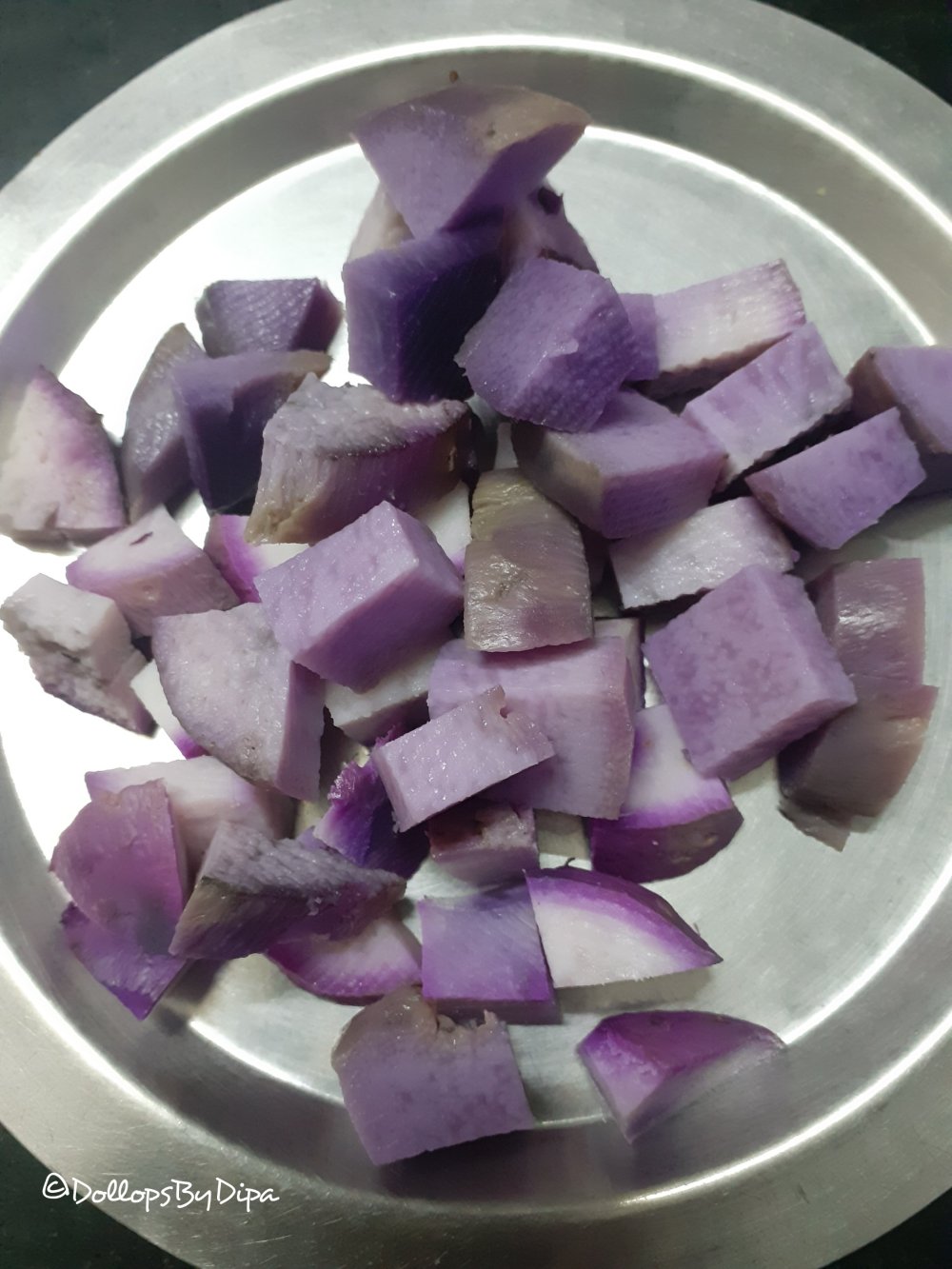 1. Properly wash and clean yam, peel it and cut it in dices. Steam it for 5-7 minutes.