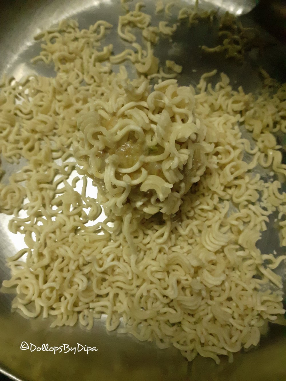 1. Prepare two cakes of maggi noodles as per instructions without taste maker. Mash boiled potatoes.