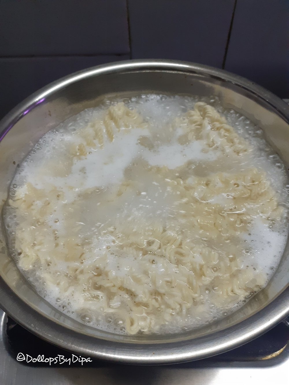 1. Prepare two cakes of maggi noodles as per instructions without taste maker. Mash boiled potatoes.