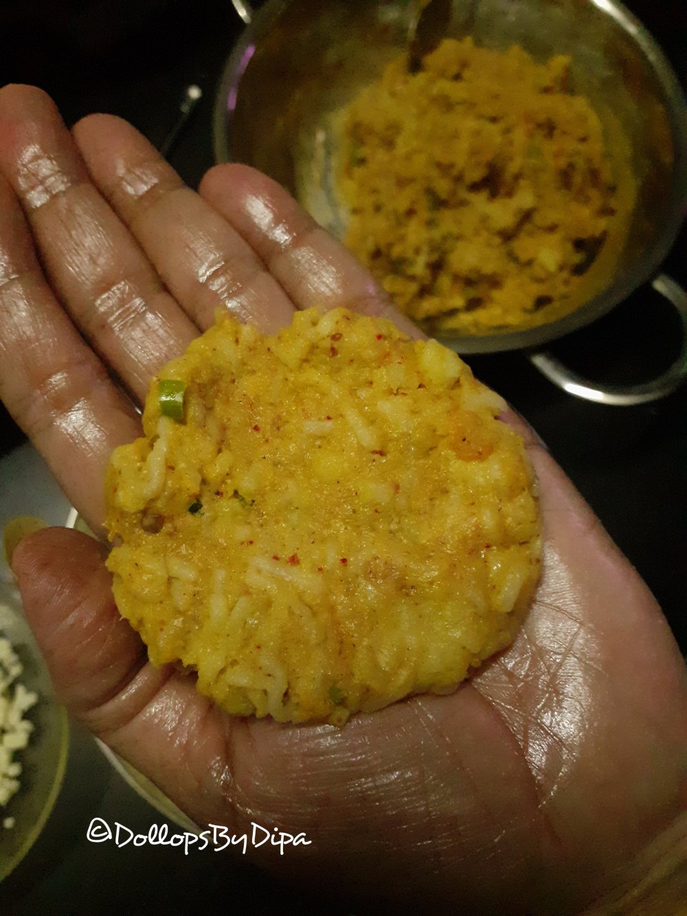 3. Now take a lemon sized portion from that mixture in greased palm and flatten.