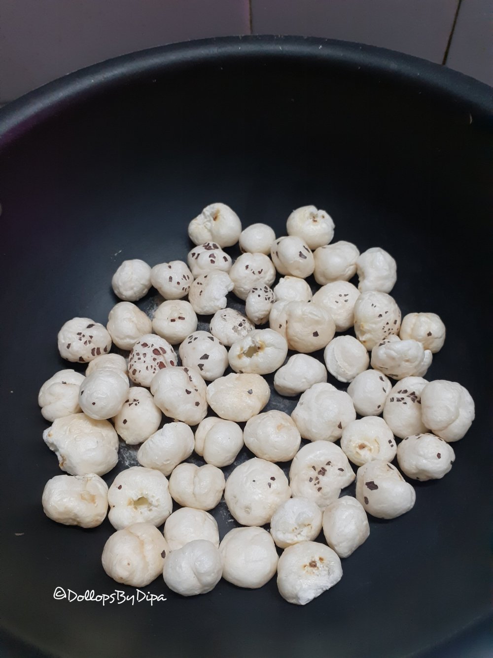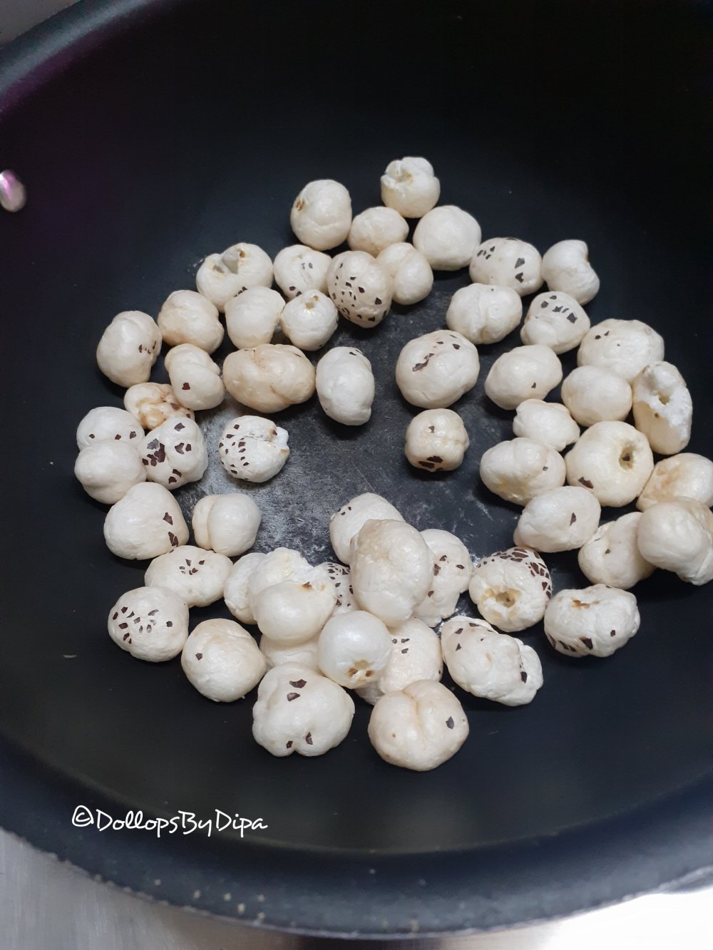 1. Dry roast makhana on slow flame till it becomes crispy and slightly change in colours.