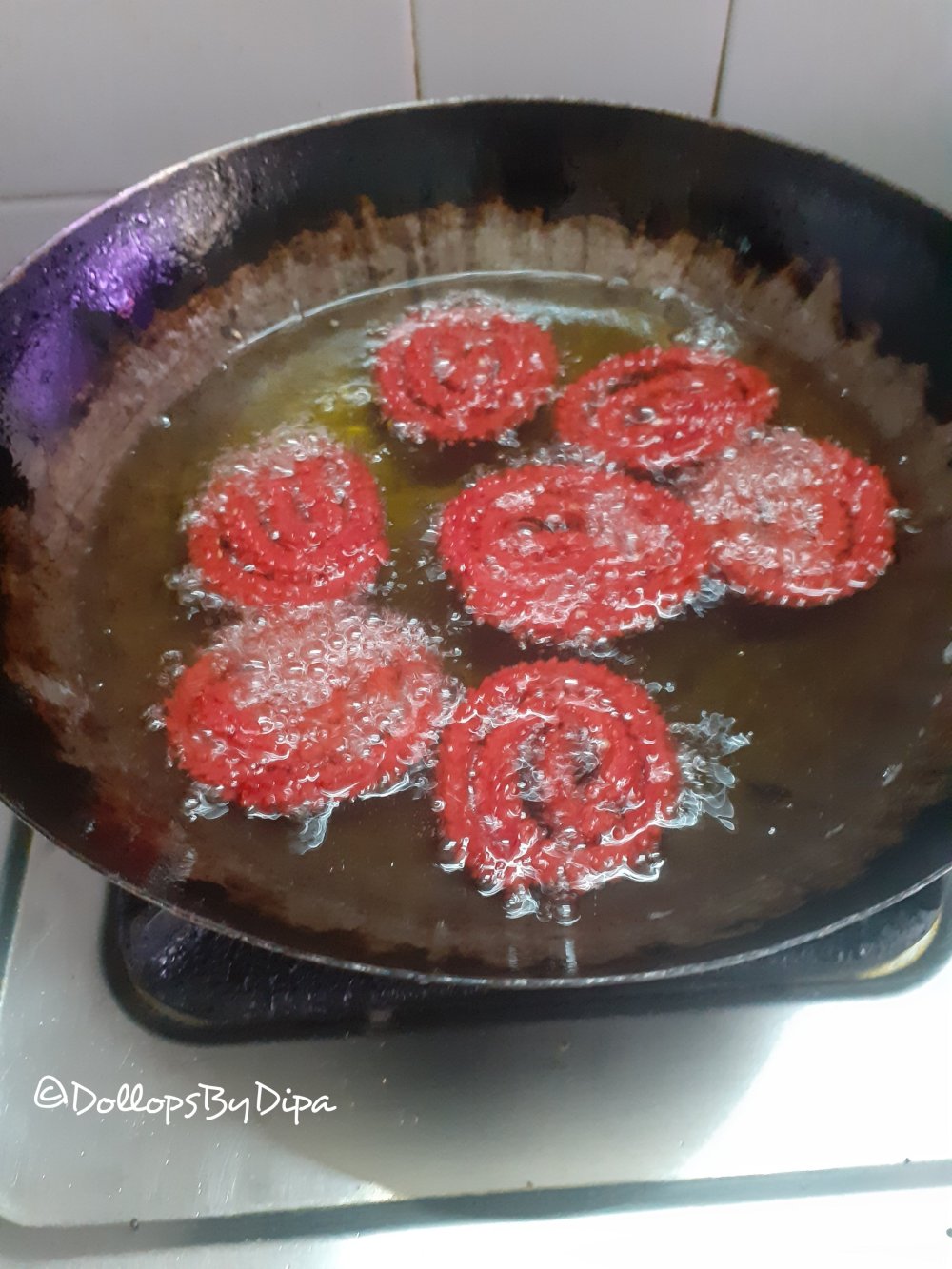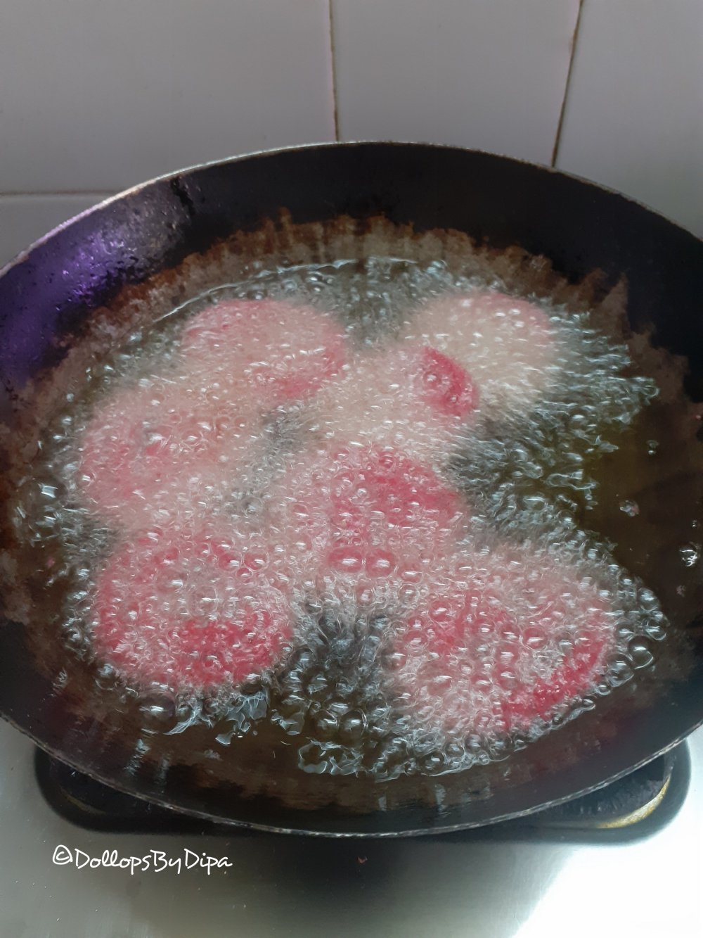 5. Deep fry it from both sides on a slow to medium flame till it becomes crunchy.