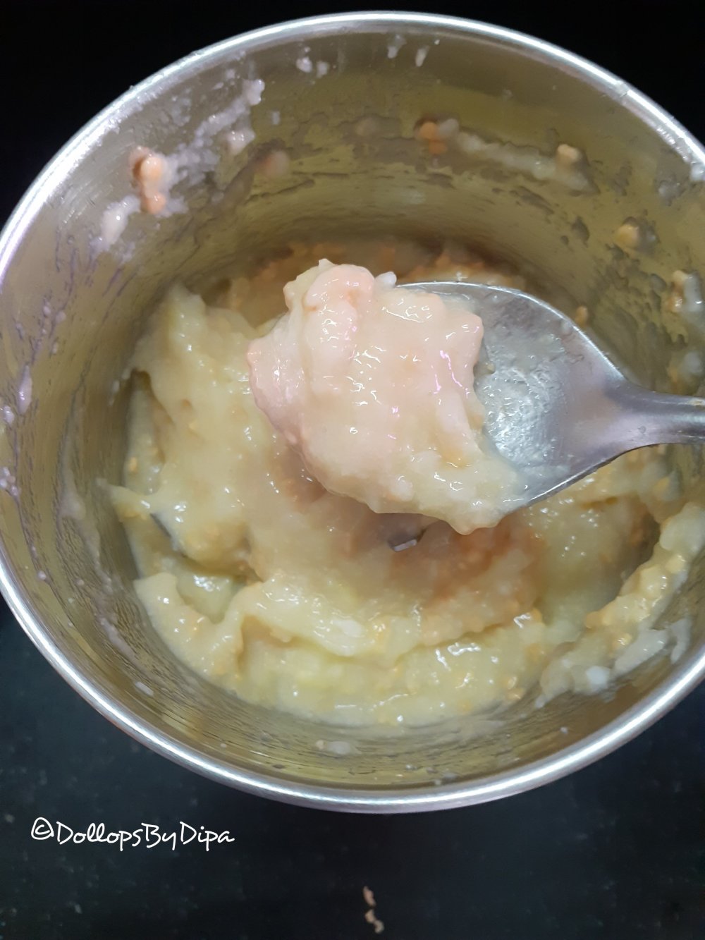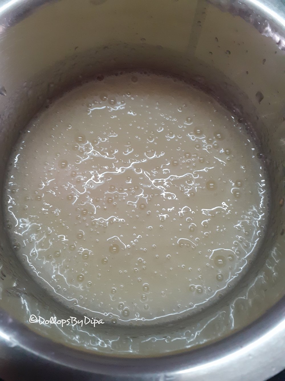 5. Add blended pulp water, turmeric, red chilli powder, salt and mix well.