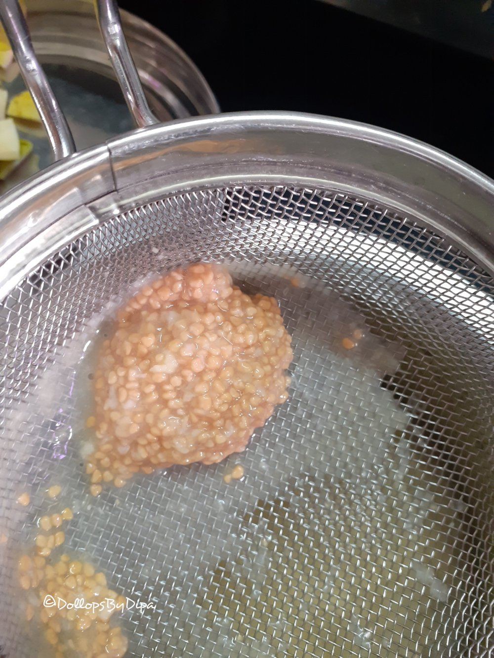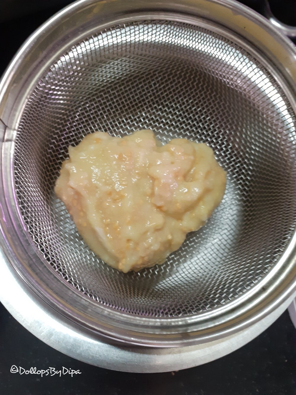3. Now transfer this paste in sieve and separate seeds and pulp by pressing ,rubbing with spoon. Add 1 cup water in pulp and blend it.