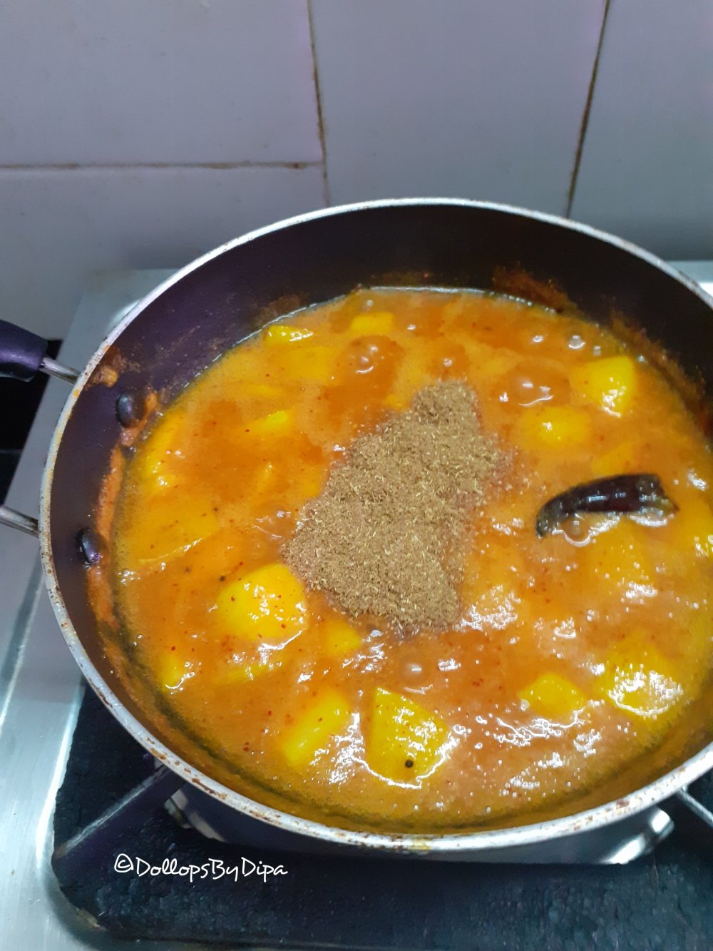 7. Lastly add coriander-cumin powder, mix well and turn off the heat after 1 minute.