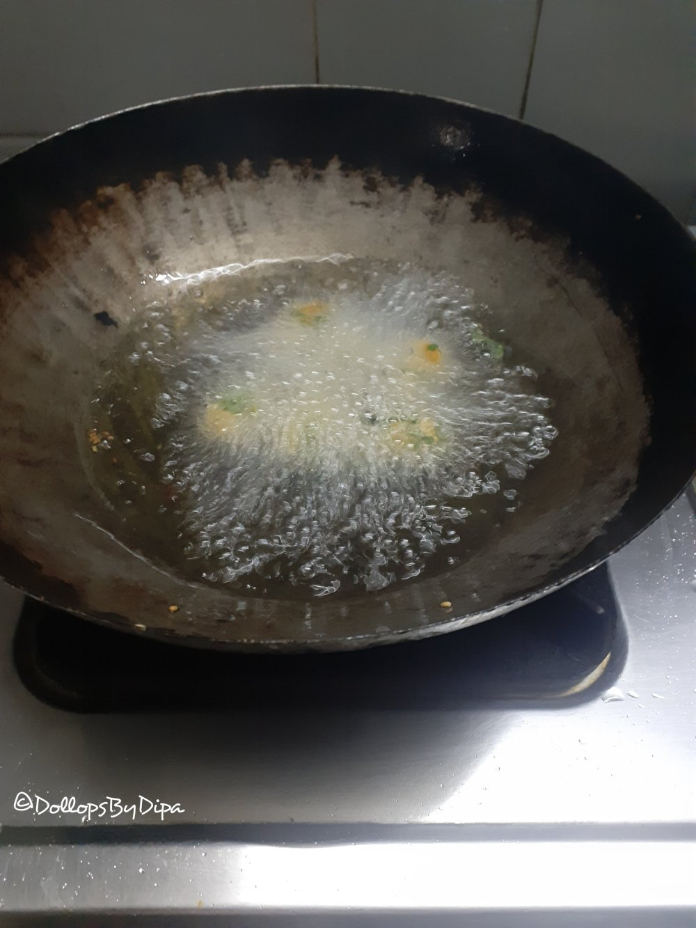 3. Heat oil, deep fry dumplings on medium flame till it turns crispy and golden.