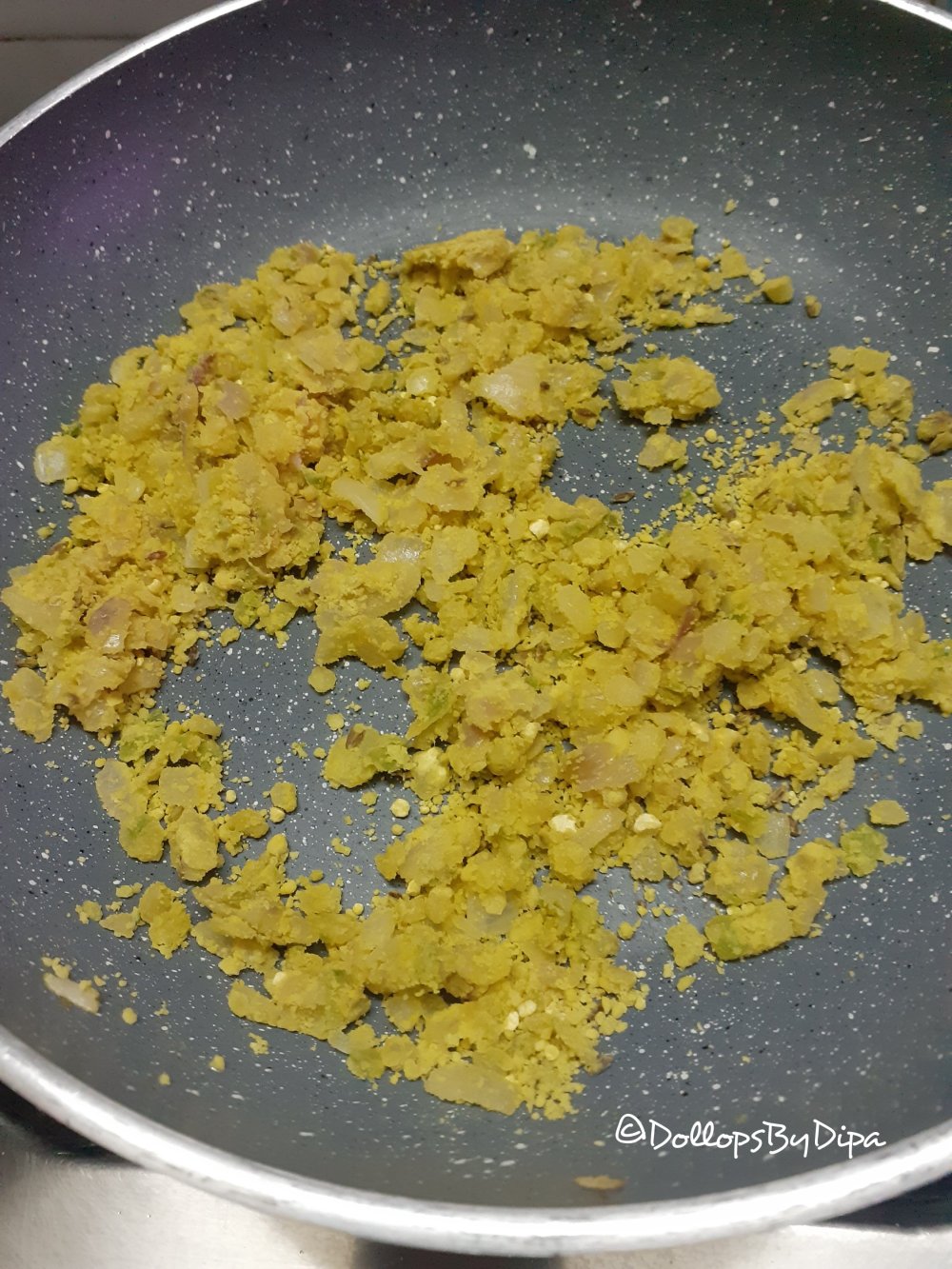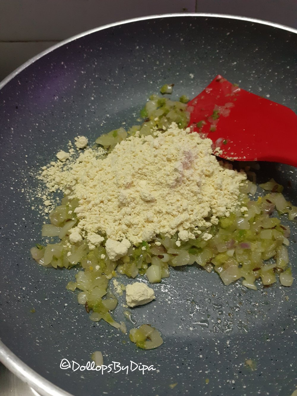 5. Then add gram flour and saute it for 1-3 minutes on low flame.
