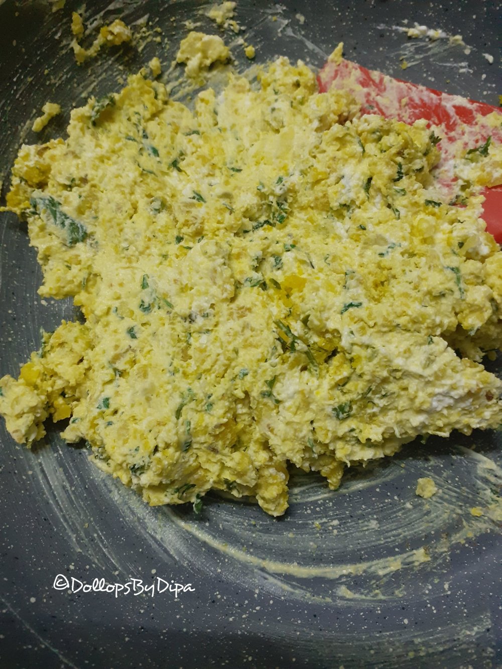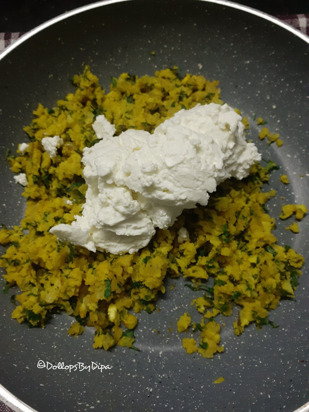 6. Add crumbled paneer and turmeric powder and mix well and cook for few seconds.