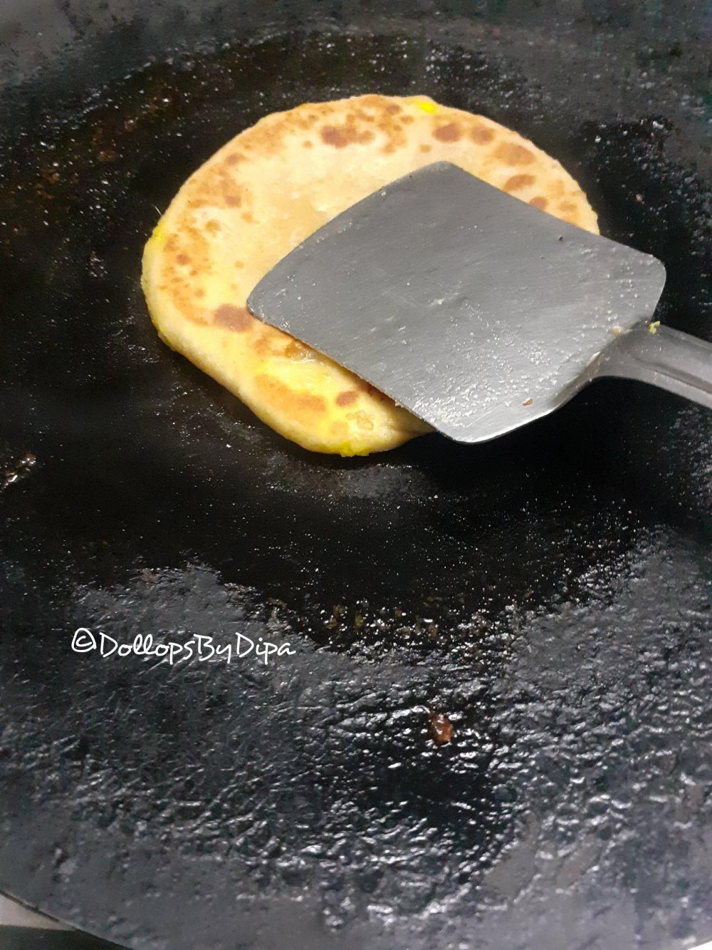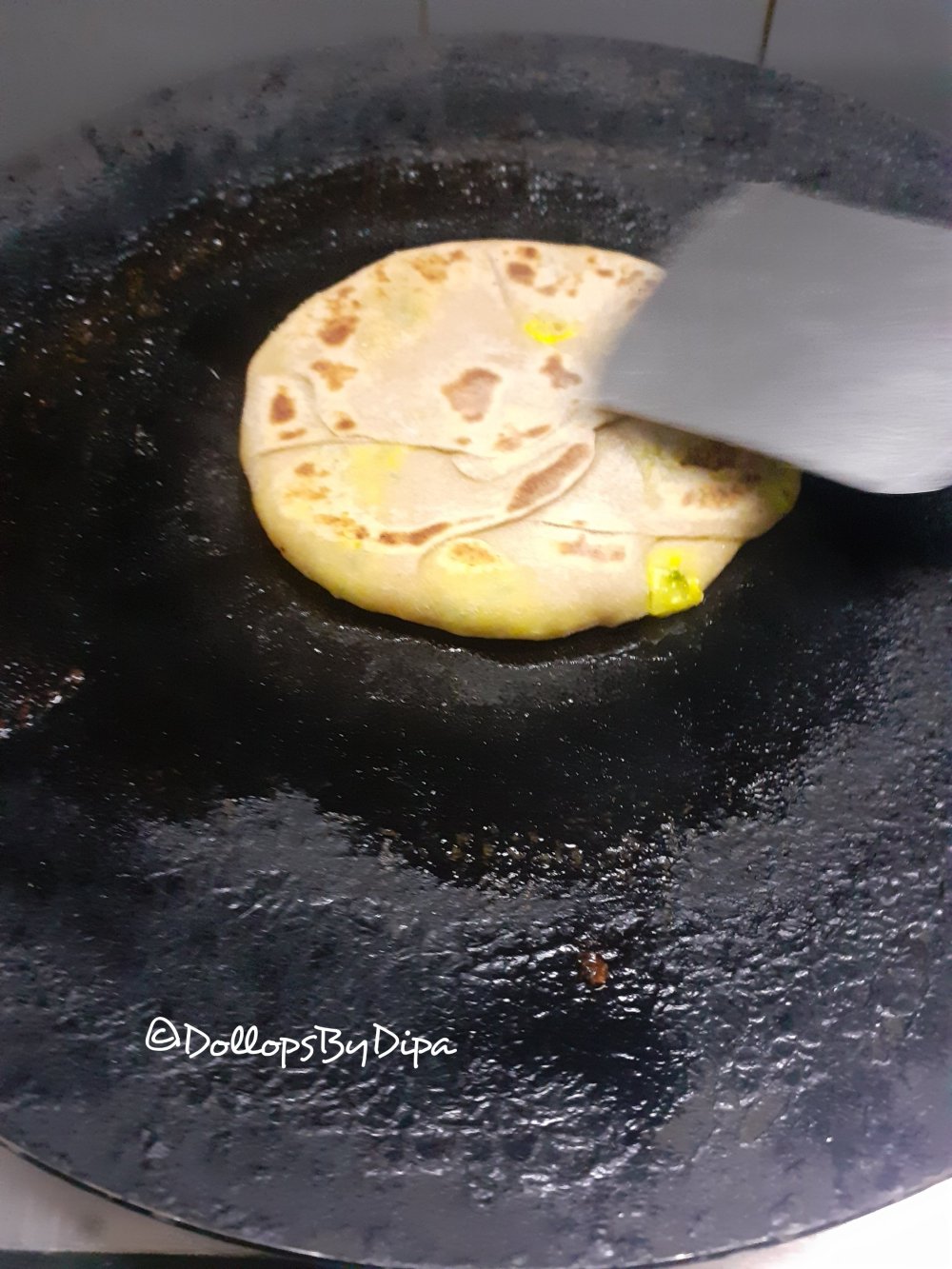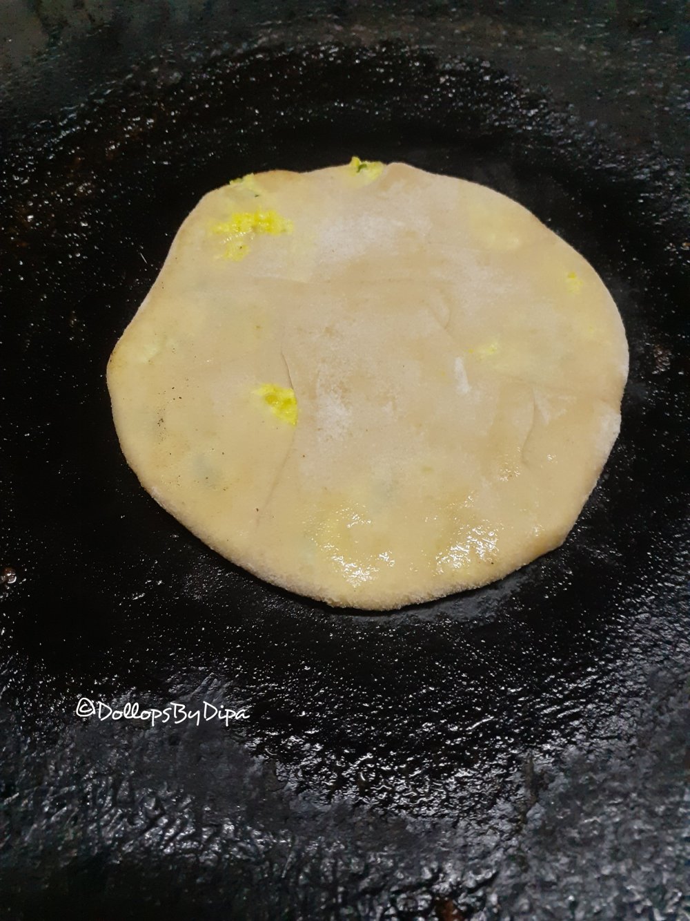 14. Heat the skillet, cook paratha lightly from both sides, without ghee.