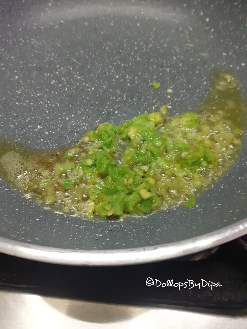 3.Once they splutter, add ginger chilli paste and saute for a few seconds.
