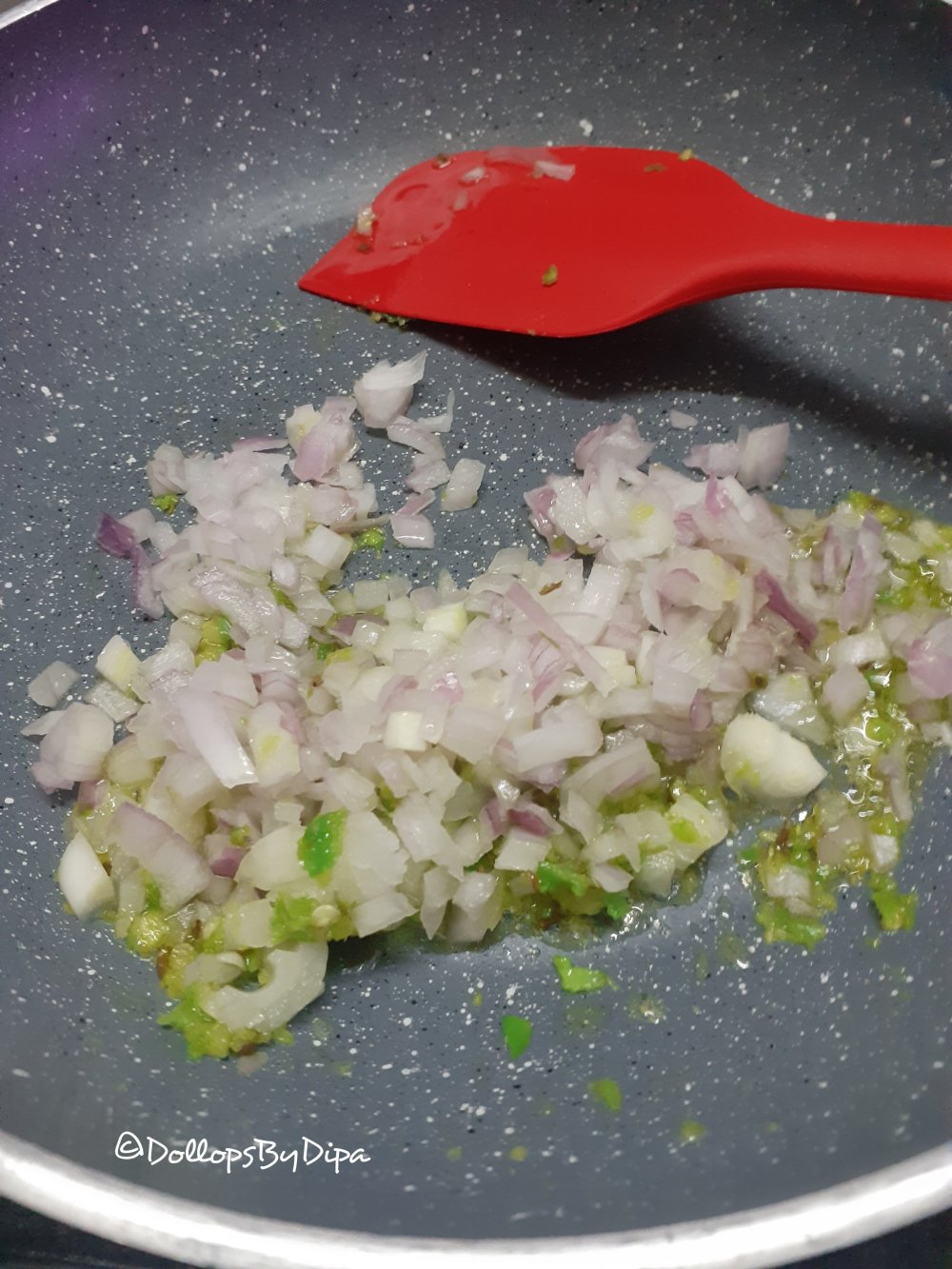 5. Then add gram flour and saute it for 1-3 minutes on low flame.