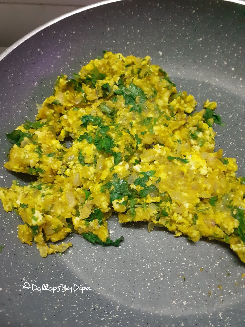 6. Add crumbled paneer and turmeric powder and mix well and cook for few seconds.