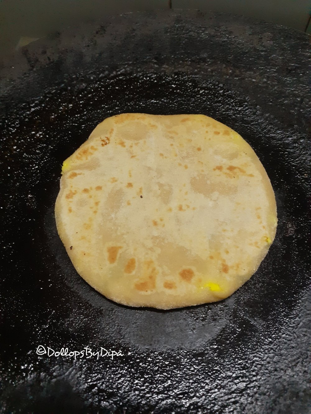 14. Heat the skillet, cook paratha lightly from both sides, without ghee.