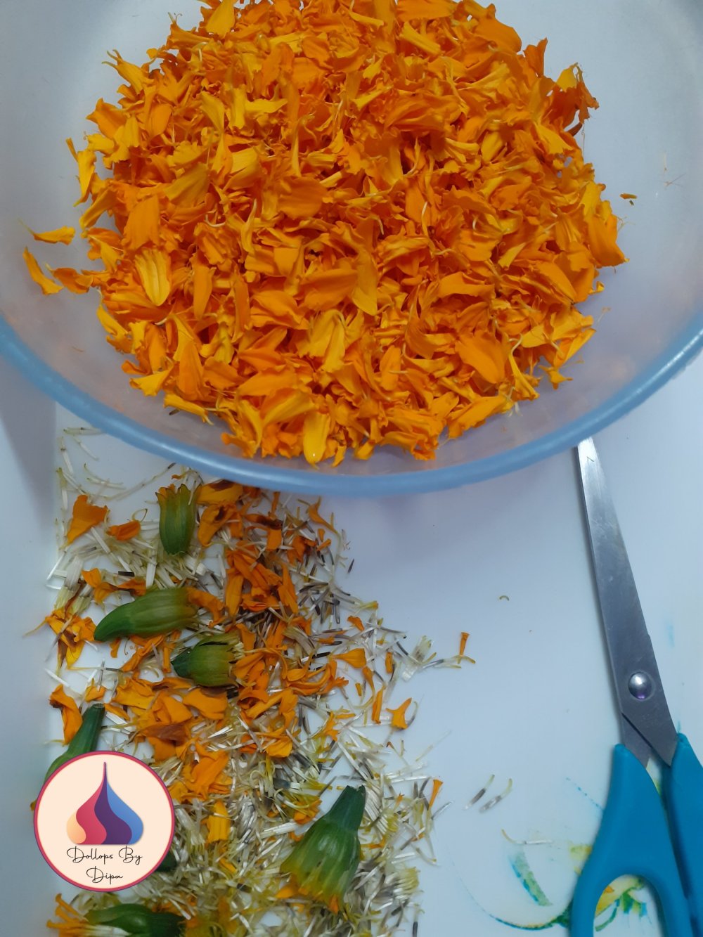 1. Separate all the petals using scissors. Trim white and black part along with stem. Keep only petals.