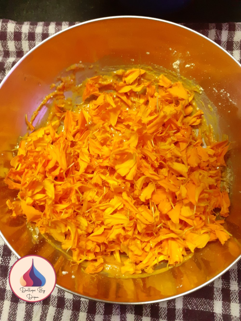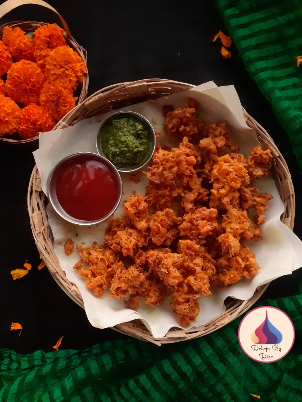 It is said that in 1500’s , native marigold seeds were taken from the Aztecs by Spanish explorers to Spain. These flowers have an over powering musky smell like wet hay or straw. There are several species of marigold, such as Mexican marigold, french marigold, pot marigold, signet marigold etc. Today I have used French Marigold and prepared. Fritters.