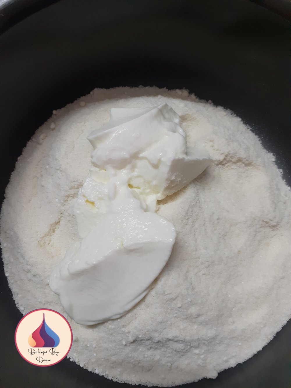 2. Transfer it in a bowl, add half cup curd and about half cup water and mix well. Cover and keep aside for 15 minutes.