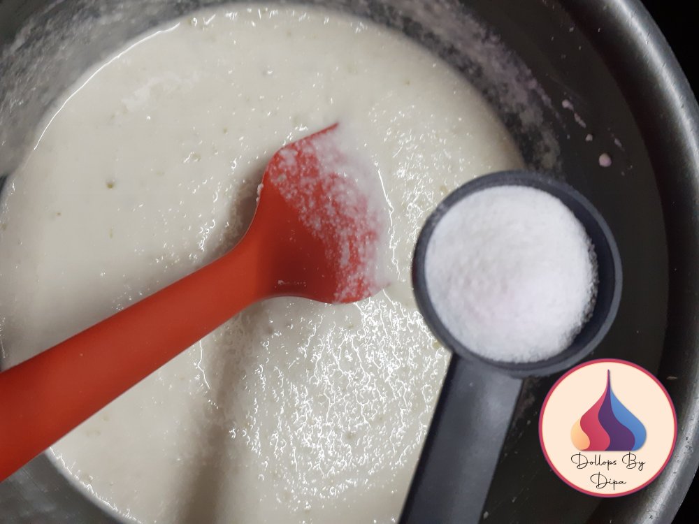 4. Prepare steamer and turn on the heat, once it becomes hot and water nears to boil, add fruit salt and mix well.