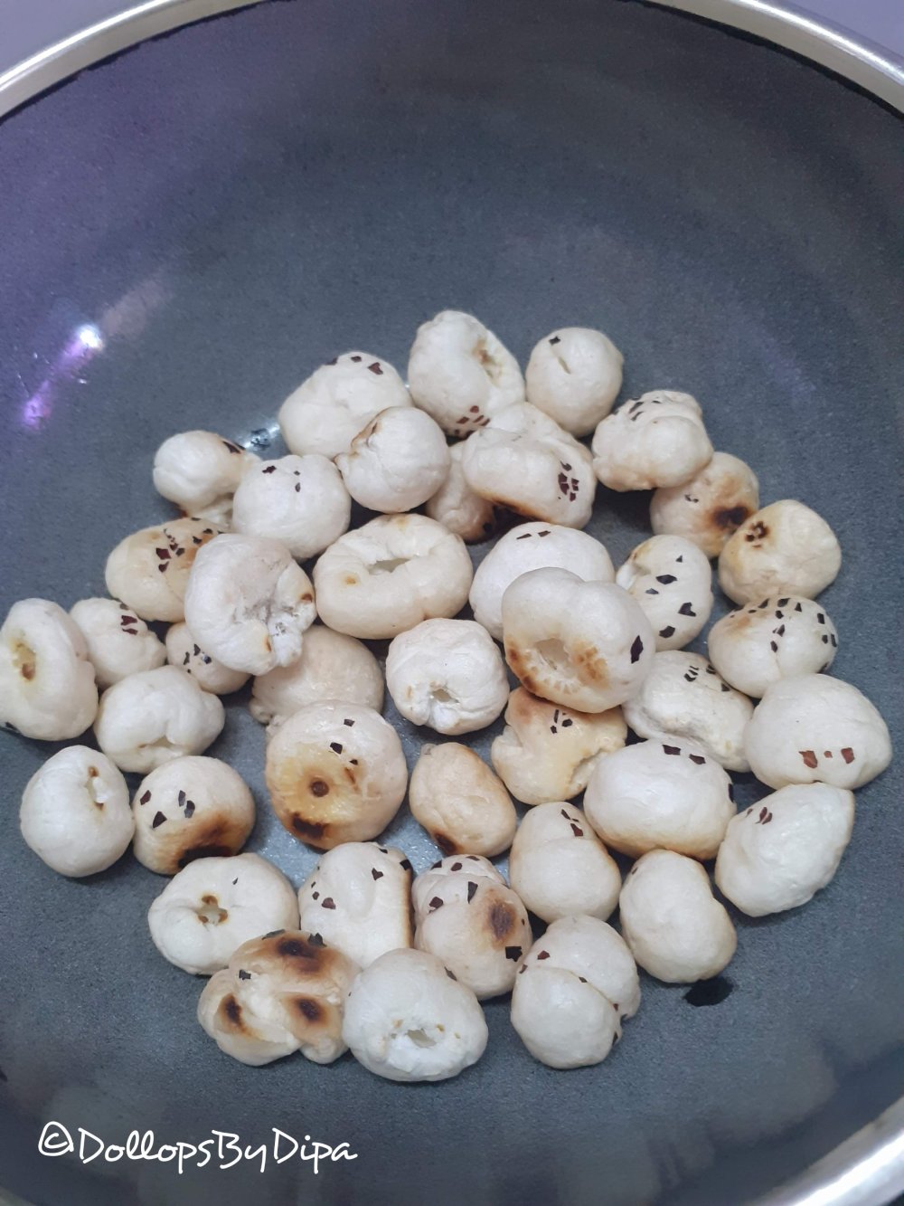 1. Heat one tbsp ghee and roast foxnuts. Once they cool down , grind it in a coarse powder.