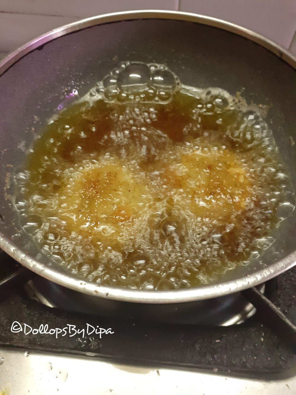 6. Deep fry it from both the sides on medium flame till it becomes golden. Remove it in tissue lined plate.