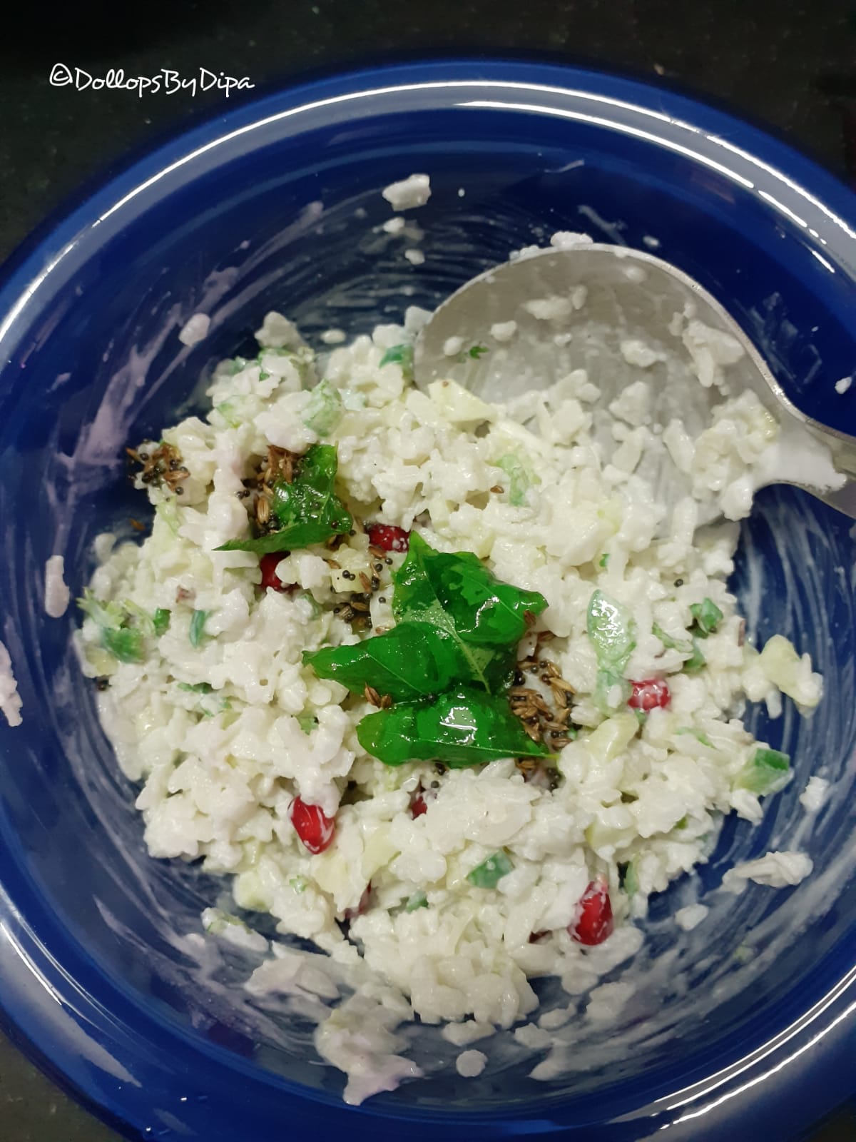 4. Heat ghee and add mustard seeds and cumin seeds, let them splutter, then add curry leaves and asafoetida and turn off the heat. Add this tempering to prepared mixture.