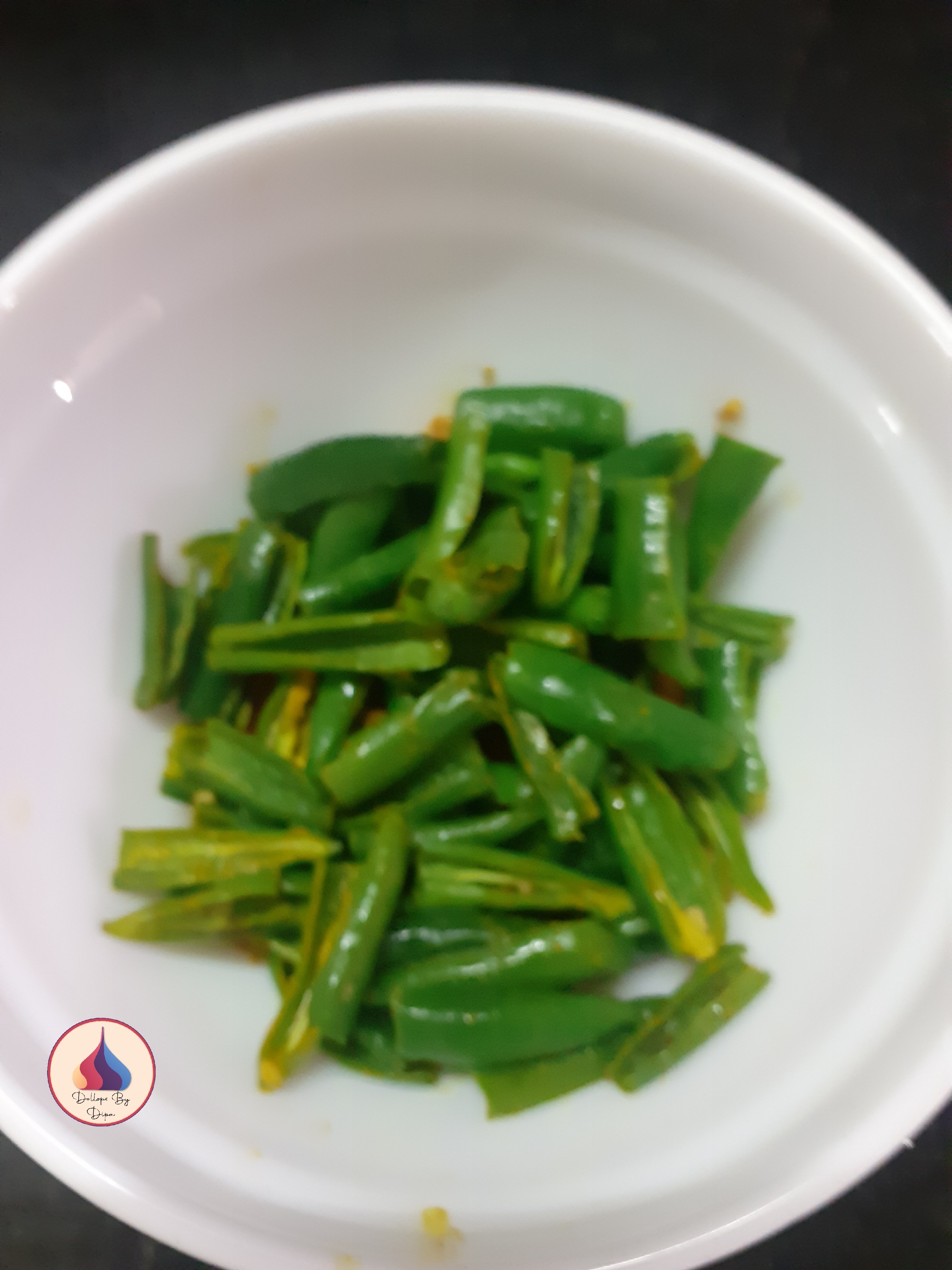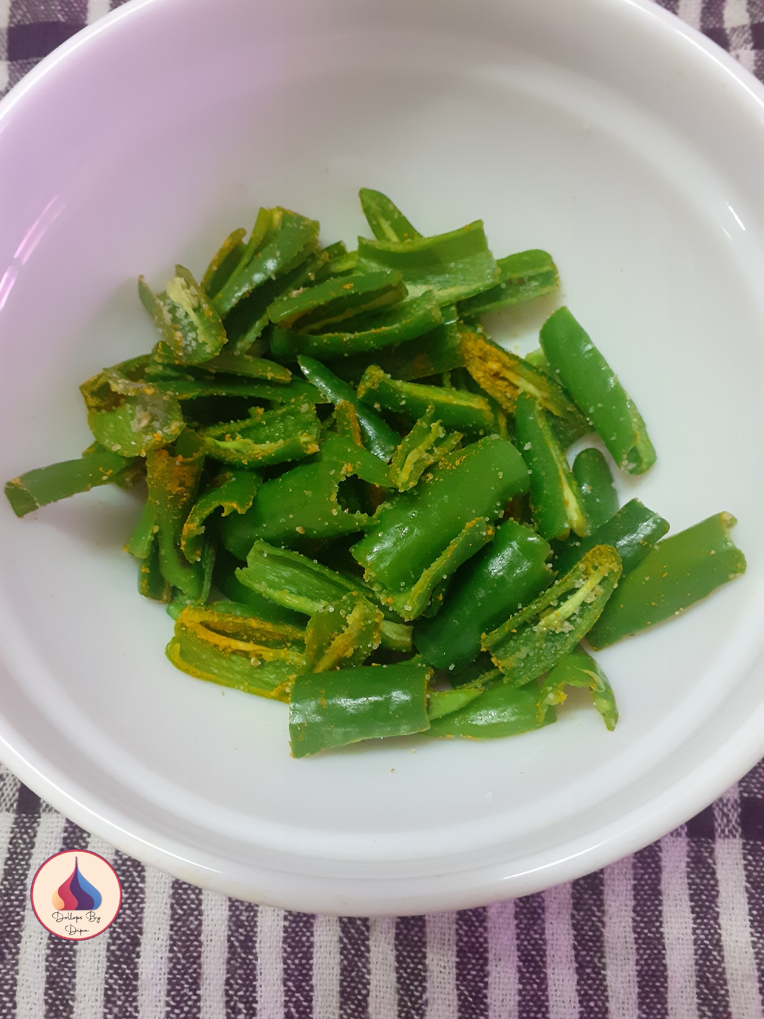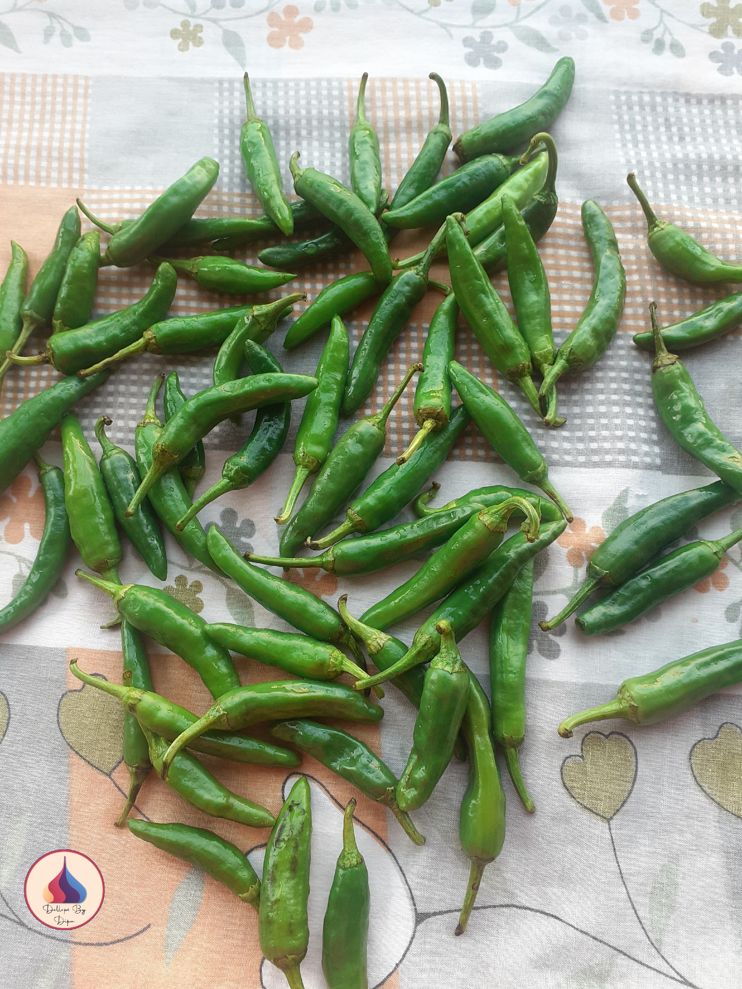 If we have to store it for a whole year, process is different. Here, I have prepared instant green chilli pickle.