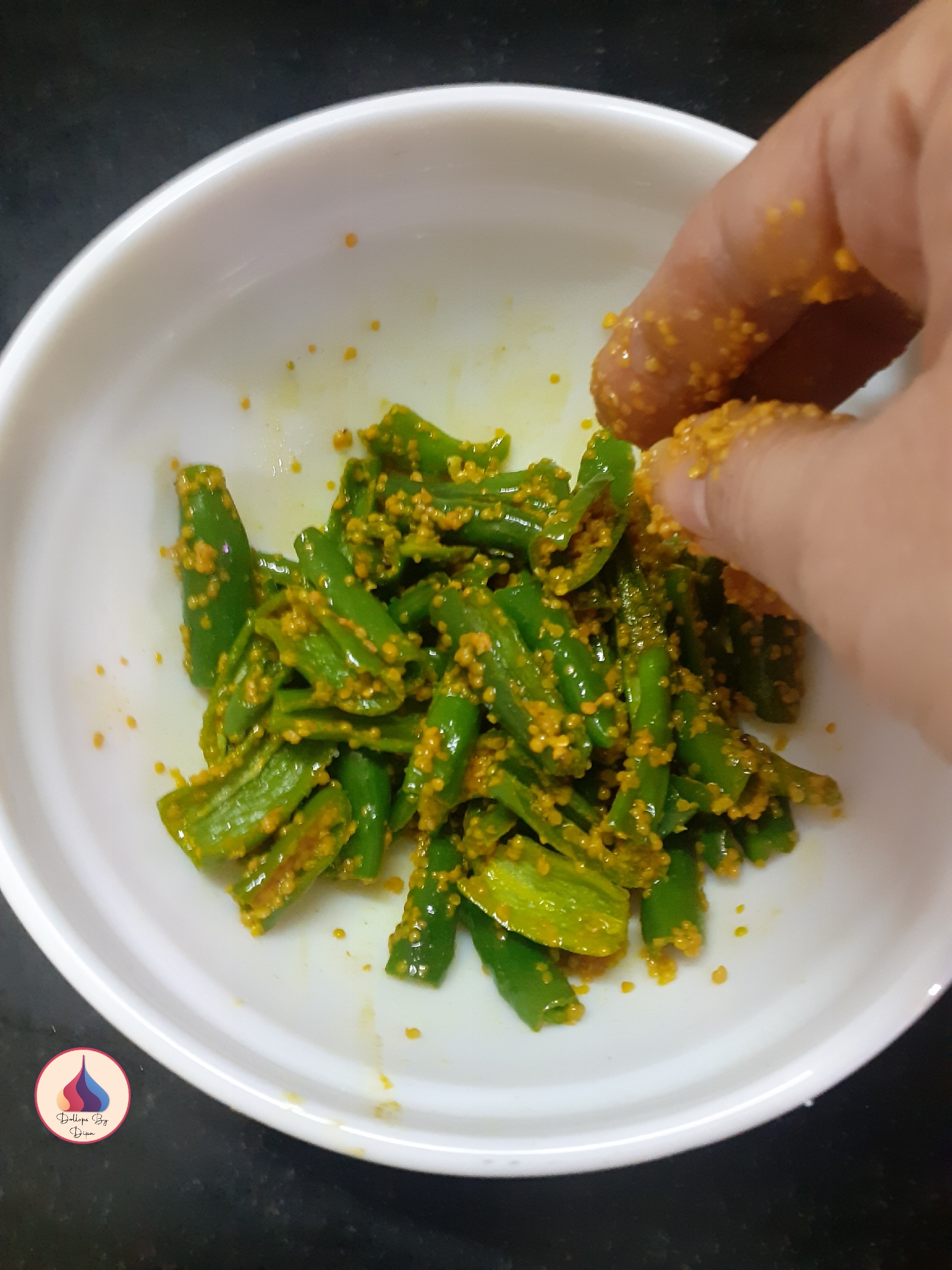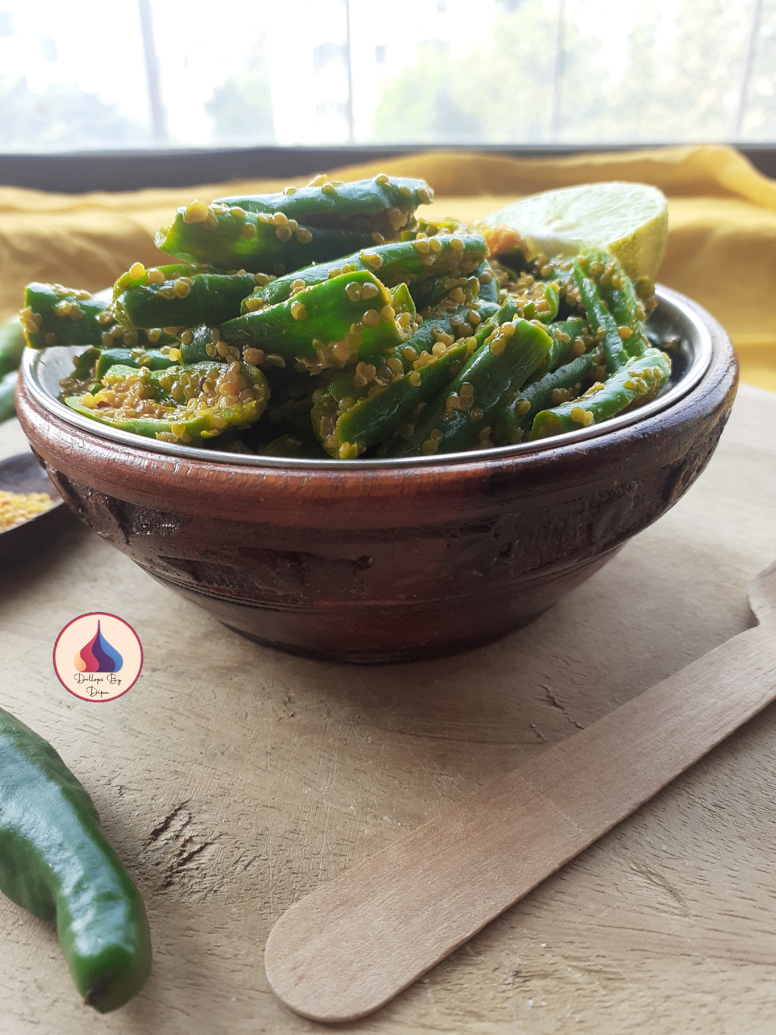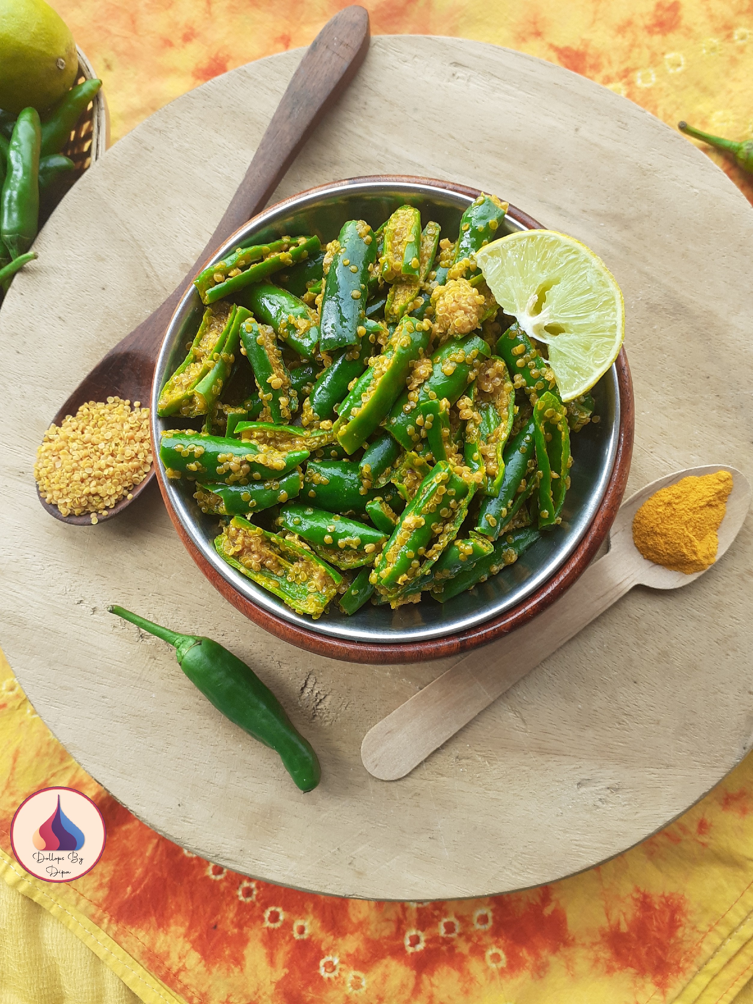 If we have to store it for a whole year, process is different. Here, I have prepared instant green chilli pickle.